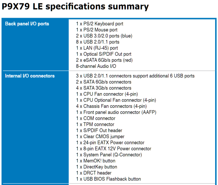 MoBo არის P9X79 LE https://dlcdnets.asus.com/pub/ASUS/mb/LGA2011/P9X79-LE/E8039_P9X79_LE.pdf
