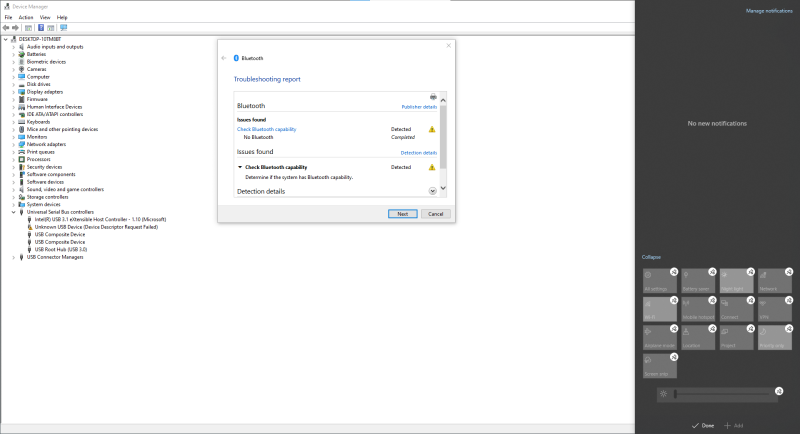 სალამი ხალხო მოკლედ ლეპტოპი (რაც მიწერია ეგ სისტემა და ჰარდია) დავაკავშირე მონიტორთან, არ ვიცი რამდენად რელევანტურია მარა ამ დროს მოხდა და უეცრად ბლუთუზი გაქრა, აორთქლდა მთელი სისტემიდან, აღარც device manager-შია, აღარც action center-შია თუ რაღაც ოხრობა როა, settings-ში წერს რო გათიშულია, სერვისებში ხელით ჩართვა გამორთვა ვცადე თავისით ითიშება ხოლმე ალბათ არსად რო აღარაა მაგიტო ავტომატურად თიშავს. მოვქექე ინტერნეტი, ყველაფერი ვცადე დრაივერების განახლება, ვინდოუსის განახლებაც შევამოწმე მარა არაა არაფერი მოსული, ხელით დაყენება დრაივერის ბლუთუზისთვის, ჩაშენებული troubleshoot-ზე მიწერს რო არ მოიპოვება ბლუთუზიო და იქნებ რამე გამომრჩა ან გქონიათ ვინმეს მსგავსი შემთხვევა თუ დაიბრიდა ადაპტერი და აღარაა საშველი?