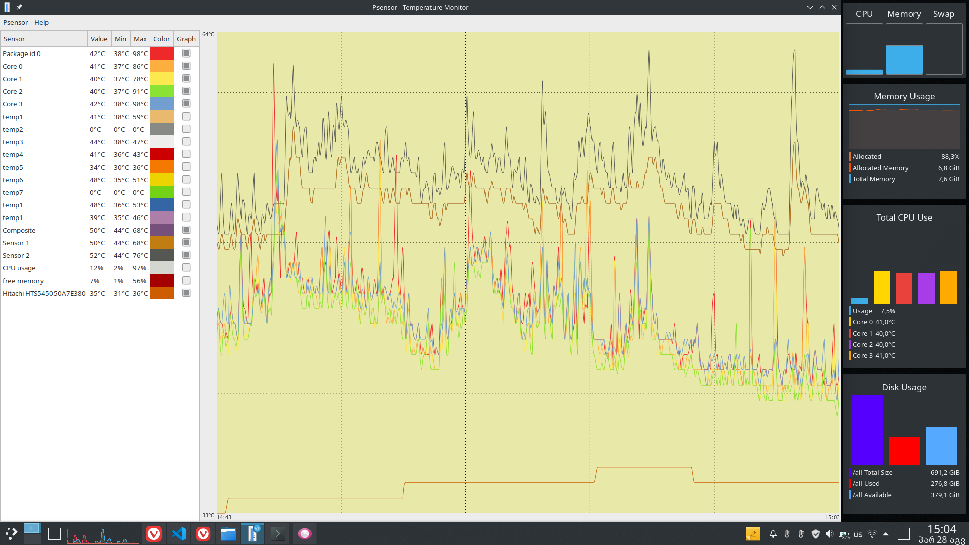 სალამი ხალხნო მოკლედ რამდენიმე დღის წინ ძველი ლეპტოპიდან ახალში გადმოვდე ჰდდ და ლეპტოპი საკმაოდ ხურდება თავდაინ ჰდდ-ის ვაბრალებდი მარა რო შევამოწმე პროგრამებით აღმოჩნდა, რომ პროცეროსი და სსდ 100 გრადუსამდე ადის ტემპერატურა და ორივე საკმაოდ იტვირთება თითქმის ბოლომდე არადა საერთოდ არ ვთამაშობ და ძირითადად ბრაუზერს(vivaldi), vs code და xtreme download manager-ს ვიყენებ რისი ბრალი შეიძლება იყოს? p.s ლინუქსი მიყენია კერძოდ manjaro kde