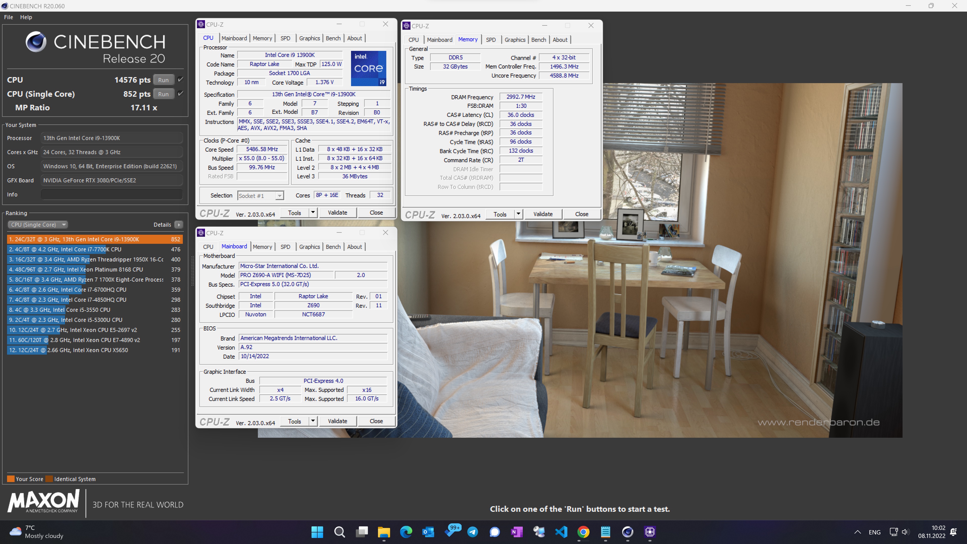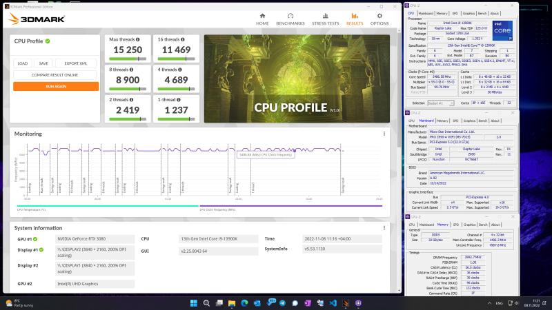 12. 13900K ჩამომივიდა გუშინ, დავაყენე და, რა თქმა უნდა, ფეჩია რეალურ აპპებში და ა.შ. ყველაფერი მშვენივრადაა, მაგრამ ბენჩებში და რენდერინგში, როცა ყველა ბირთვი 100% იტვირთება, თერმალ ტროტლინგზე მიდის სტოკ პაუერ ლიმიტებზე. Thermal Velocity ბირთვები, 5.8-ზე რომლებიც იბუსტებიან ადიან 100 გრადუსამდე და ტემპერატურის შესანარჩუნებლად სიხშირის დაგდებას იწყებს პროცი. 5.8-ზე მაინც ბუსტავს მერე პერიოდულად, მაინც ადის 280 ვატზე, მაგრამ დროდადრო აგდებს სიხშირეს ტემპერატურის გამო. მოუწევს ტურბოზე პაუერ ლიმიტის დადება და ოპტიმიზაცია ქორ ვოლტიჯს კი გასაგებია, რატომაცაა ეს 280-320 ვატიანი ტურბო რეჟიმი, რომ AMD_სთვის სადღაც 5 FPS-ით ეჯობნათ და ა.შ. მაგრამ რევიუებში რაც ვნახე და ზემოთაც წერთ, დაბალ პაუერ ლიმიტზე მიზერული პერფორმანსი იკარგება, როგორც ჩანს და ეგ იქნება ყველაზე კარგი გამოსავალი. 5% დანაკარგი, რომელიც თან ერთეულ აპპებში ჩანს, რეალურად შესამჩნევი მაინც არ იქნება. ჩვენ der8auer-ს უდევს კარგი ვიდეო 13900K-ს ტუნინგზე და პაუერ ლიმიტებზე: