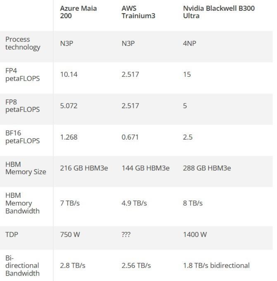 Microsoft-მა წარადგინა Maia 200, საფირმო 3-ნმ ხელოვნური ინტელექტის ამაჩქარებელი 216 გბ HBM3e მეხსიერებით Microsoft-მა წარმოადგინა უახლესი ხელოვნური ინტელექტის ამაჩქარებელი Azure Maia 200. ახალი ჩიპი Microsoft-ის ამავე დასახელების მქონე სერვერული გრაფიკული პროცესორების შემდეგი თაობაა, რომელიც შექმნილია ხელოვნური ინტელექტის ინფორმაციული დავალებების მაღალი სიჩქარითა და წარმადობით გასაშვებად, რითაც აღემატება ისეთი მსხვილი კონკურენტების შეთავაზებებს, როგორებიცაა Amazon და Google. ფოტოს წყარო: Microsoft Maia 200 Microsoft-ის მიერ ოდესმე დანერგილ ყველაზე ეფექტურ ინფერენსულ სისტემად არის აღიარებული. კომპანიის ყველა პრეს-რელიზი ხაზს უსვამს როგორც მის მაღალ წარმადობას, ასევე Microsoft-ის მხრიდან გარემოს დაცვისადმი ერთგულებას. კომპანია აცხადებს, რომ Maia 200 უზრუნველყოფს 30%-ით მეტ წარმადობას ერთ დოლარზე, ვიდრე პირველი თაობის Maia 100, რაც საკმაოდ შთამბეჭდავია იმის გათვალისწინებით, რომ ახალ ჩიპს ასევე აქვს 50%-ით მაღალი TDP წინამორბედთან შედარებით. Maia 200 აგებულია TSMC-ის 3-ნანომეტრიან ტექნოპროცესზე და შეიცავს 140 მილიარდ ტრანზისტორს. ცნობილია, რომ იგი უზრუნველყოფს 10 პეტაფლოპამდე FP4 წარმადობას, რაც სამჯერ უფრო სწრაფია, ვიდრე Amazon-ის კონკურენტი Trainium3. Maia 200 აღჭურვილია 7 ტბ/წმ სიჩქარის მქონე 216 გბ HBM3e მეხსიერებით და 272 მბ ინტეგრირებული SRAM მეხსიერებით. ფოტოს წყარო: Tom's Hardware ზემოთ მოცემული შედარების დიაგრამა, რომელიც Tom's Hardware-მა მოამზადა, აჩვენებს, რომ Maia 200-ს Amazon-ის გადაწყვეტილებასთან შედარებით გამოთვლითი სიმძლავრის მხრივ აშკარა უპირატესობა აქვს და, ზოგიერთი ასპექტით, Nvidia-ს B300 Ultra ხელოვნური ინტელექტის ამაჩქარებელს შეესაბამება. ცხადია, მათი პირდაპირ კონკურენტებთან შედარება უაზროა: მომხმარებლებს Maia 200-ის პირდაპირ შეძენა არ შეუძლიათ და Blackwell B300 Ultra ოპტიმიზებულია Microsoft-ის ჩიპთან შედარებით გაცილებით მეტი რესურს-ინტენსიური სამუშაო დატვირთვისთვის. გარდა ამისა, Nvidia-ს პროგრამული უზრუნველყოფის სტეკი B300-ს ყველა სხვა კონკურენტთან შედარებით მნიშვნელოვან უპირატესობას ანიჭებს. თუმცა, Maia 200 ეფექტურობით B300-ს აღემატება, რაც მნიშვნელოვანი მიღწევაა ხელოვნური ინტელექტის გარემოზე ზემოქმედების შესახებ საზოგადოების მზარდი შეშფოთების ეპოქაში. Maia 200 მუშაობს B300-ის თითქმის ნახევარ TDP-ზე (750 ვატი 1400 ვატის წინააღმდეგ). მიუხედავად იმისა, რომ Microsoft-ის ახალი ხელოვნური ინტელექტის ამაჩქარებელი ენერგოეფექტურობით წინამორბედ Maia 100-ის მსგავსია, იგი წინამორბედის მსგავსად იმუშავებს თეორიულ მაქსიმალურ TDP-სთან შედარებით დაბალ დონეზე. Maia 100-ს ჰქონდა 700 ვატი TDP, მაგრამ Microsoft-ი აცხადებს, რომ მისი ოპერაციუ
