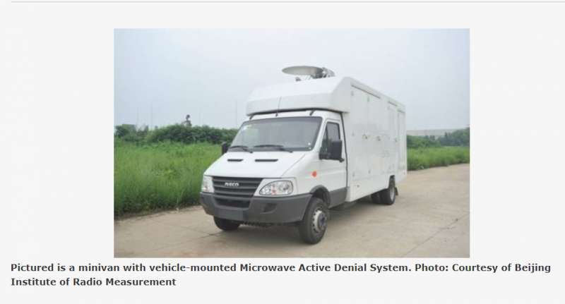 ჩინელმა სამხედრო ძალებმა შექმნეს არამომაკვდინებელი მიკროტალღური იარაღი, რომლითაც ხდება კანქვეშა ნერვების პარალიზება და იწვევს ძლიერ ტკივილს. „აქტიური შეკავების მიკროტალღური სისტემა“ - ასე უწოდეს ტექნოლოგიას და იგი გამოყენებული იქნება მასობრივი არეულობების, ტერორისტების დაკავების დროს, აგრეთვე სახელმწიფო მოხელეების დასაცავად - წერს Global Times. იარაღი შედგება მიკროტალღური რადარებისგან, რომლებიც მოწინააღმდეგეს უგზავნიან 0,4 მმ სიგრძის ტალღებს. მწარმოებლები ამტკიცებენ, რომ იარაღის ზემოქმედება არ იწვევს სიმსივნეს და ფერტილურობის პრობლემას. ტექნოლოგიამ გამოცდა წარმატებით გაიარა. დაგეგმილია, რომ იგი გამოყენებული იქნება როგორც ერთ პირზე შეტევისას, ასევე ადამიანთა დიდი ჯგუფის წინააღმდეგ. მიკროტალღური სისტემა შესაძლებელია დამონტაჟდეს ტრადიციულად, სტატიკურად. აგრეთვე შესაძლებელია მისი ტრანსპორტირება: შესაძლებელია რადარი დაყენდეს მცირე ზომის მიკროავტობუსის სახურავზე. ამ სიახლემდე ადრეულ პერიოდში ჩინეთის არმიამ გამოაცხადა კონკურსი, რომლის მიხედვითაც უნდა შექმნილიყო დამაგნიტებული პლაზმის მქონე არტილერიული ჭურვები. მიიჩნევა, რომ ამგვარი ჭურვები გამოყენებული იქნება ტრადიციული სროლის მეთოდის იარაღებში. https://hightech.fm/2019/02/26/china-weapon
