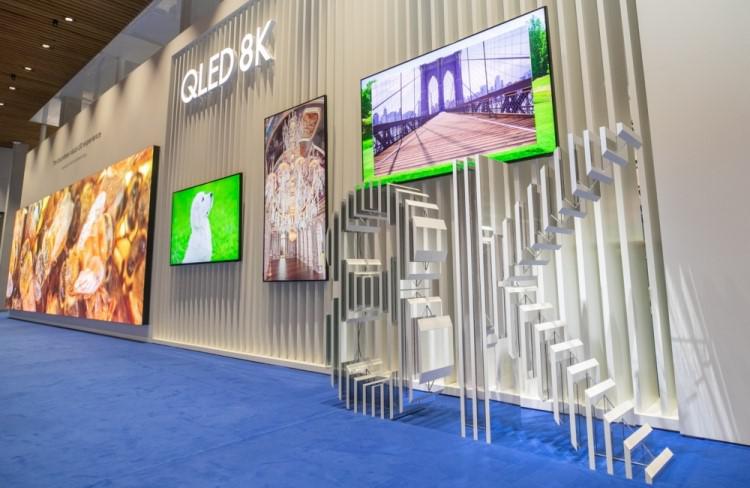 გამოფენა 2019 Integrated Systems Europe-ზე (ISE 2019) კომპანია Samsung-მა მთელი რიგი სიახლეები წარმოადგინა, მათ შორის თავისი პირველი, 8K გაფართოების მქონე QLED-დისპლეი, ახალი LED-ეკრანი The Wall 8K და ტექნოლოგია Multi-Link HDR. კომპანიამ წარადგინა 82-დუიმიანი პროფესიონალური QLED 8K-დისპლეი, რომელშიც მოცემულია ბაზარზე არსებული უმაღლესი გაფართოების დონე სმარტ-მასშტაბირების ტექნოლოგია - AI Upscaling. კომერციულ დისპლეებში არსებული მასშტაბირების ტექნოლოგია მაღაზიებსა და სარეკლამო ცენტრებს ეკონომიის საშუალებას აძლევს, შესაძლებელია სტანდარტული გაფართოების კონტენტის გაშვება 8K ფორმატზე. 7680 × 4320 პიქსელის მქონე გაფართოების წყალობით გამოსახულების ცალკეული პიქსელები პრაქტიკულად შეუმჩნეველია ადამიანის თვალისთვის. პანელები 44 მმ სისქისაა და მარტივია მათი დამონტაჟება როგორც „ალბომის“, ისე „პორტრეტის“ რეჟიმში. პროფესიონალური QLED 8K-დისპლეი ხასიათდება შავი ფერის გაუმჯობესებული გამოსახულებით ლოკალური ჩამუქებისა და ტექნოლოგია Quantum Light Control-ის წყალობით. დისპლეის აქვს 4000 ნიტიანი მაქსიმალური სიმკვეთრე და 100%-იანი ფერთა აღქმა HDR10+ სტანდარტის შესაბამისად. უზრუნველყოფილია ფერთა გამის ნებისმიერი შეფერილობის მაღალხარისხიანი ასახვა. გამოფენაზე კომპანიამ აგრეთვე წარმოადგინა მსხვილფორმატიანი ეკრანის - The Wall-ის მოდიფიკაცია: მისი დიაგონალი 292 დუიმია, გაფართოება - 8K. ამ ეკრანის დაყენება მრავალნაირი, 73-იდან 292 დუიმამდე კონფიგურაციისამებრ არის შესაძლებელი. რეჟიმ Ambient-ის მეშვეობით შესაძლებელია ეკრანის custom-იზება და მასზე სხვადასხვა კონტენტის ასახვა. აგრეთვე შესაძლებელია The Wall-ს დაემატოს დეკორატიული ჩარჩოები, რითაც იგი ორიგინალურ სახეს იძენს. Samsung-ი თანამშრომლობს მთელ რიგ წამყვან კომპანიებთან, მათ შორისაა: Harman Luxury Audio და Steinway Lyngdorf - ხმოვანი სისტემებისთვის; Control4, Crestron და Savant - სახლის პირობებში ავტომატიზაციისთვის; Domotz, Ihiji და OrvC - დისტანციური მონიტორინგისთვის. Samsung-მა ასევე წარადგინა Multi-Link LED HDR: წარმოებაში პირველი გაფართოებული დინამიური დიაპაზონის ტექნოლოგია 8K რეზოლუციით, რომელიც განკუთვნილია LED ეკრანებისთვის. Samsung-ის მიერ შემუშავებული ალგორითმი ნებისმიერ კონტენტს უზრუნველყოფს HDR ხარისხით სპეციალური მეტამონაცემების საჭიროების გარეშე. გამოსახულების მაღალი ხარისხი უზრუნველყოფილია ტექნოლოგიებით - Inverse Tone Mapping (ITM) და Dynamic Peaking, რომლებიც ზრდიან კონტრასტულობას და ფერის აღქმას მთელ ეკრანზე სიმკვეთრის გაორმაგებით. ფუნქცია Color Mapping-ით მიიღწევა ადაპტირებული ფერთა გამა რეალისტური და ნათელი გამოსახულების მისაღებად, სტანდარტი Multi-Link LED HDR კი საშუალებას იძლევა, შემცირდე