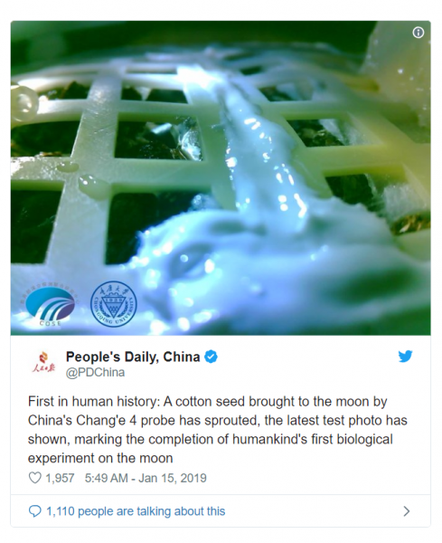 Xinhua-ს მოხსენების თანახმად, მთვარეზე მცირე ხნის წინ დაშვებული ლენდერის მიერ ბიოლოგიური ექსპერიმენტის შედეგად ზრდა დაიწყო ბამბის ნერგებმა. ეს პირველი შემთხვევაა, როდესაც ადამიანებმა მთვარეზე მცენარე გაახარეს. ადამიანები დედამიწის ორბიტაზე ამ დრომდეც ახდენდნენ ყვავილებისა და სხვა ტიპის მცენარეების გაშენებას - ამგვარი ექსპერიმენტი კი არასდროს არც ერთ პლანეტაზე არ განხორციელებულა, რა თქმა უნდა დედამიწის გარდა. ეს სიახლე ცნობილი გახდა ჩინური მისიის Chang’e-4-ის განხორციელებიდან ორი კვირის შემდეგ. როვერი წარმატებით დაეშვა მთვარის ზედაპირზე, იგი მთვარემავალი ლენდერისა და როვერისგან შედგება და ახორციელებს მრავალი სახის ექსპერიმენტს მთვარის შესასწავლად. ლენდერზე განთავსებულია 3-კილოგრამიანი სათავსო, რომელშიც ექვსი სხვადასხვა სახის ბიოლოგიური სახეობაა, რომლებიც მთვარის ზედაპირზე უნდა გაზარდონ. მცენარეებიდან მთვარეზე წაიღეს ბამბა, რაპსი და არაბიდოპსისი. სათავსოში აგრეთვე არის მწერების კვერცხები და საფუარი, რითიც პატარა ეკოსისტემა იქმნება. „ჩანიეს“ დაშვებიდან მცირე პერიოდშივე დაიწყო ბიოლოგიური ექსპერიმენტი, წაღებული მცენარეების თესლები მოირწყო. ამჯერად უკვე გამოქვეყნდა ფოტოები, სადაც ჩანს გაღივებული ბამბის ნერგები. ჩინეთმა აგრეთვე გამოაქვეყნა საკონტროლო ვერსიის ფოტოებიც: მთვარის პარალელურად დედამიწაზეც დათესეს ანალოგიური მცენარე, რომელიც ბევრად უკეთ იზრდება. Xinhua-ს განცხადების თანახმად, სათავსოში არსებული სხვა არც ერთი მცენარე არ ხარობს მთვარეზე, ბამბის გარდა. „ეს ფაქტი იმითაა განპირობებული, რომ დედამიწაზეც ყველა მცენარე ყველა ადგილას ვერ ხარობს“ - აცხადებს ენდრიუ ჯონსი - დამოუკიდებელი ჟურნალისტი, რომელიც ჩინეთის კოსმოსურ მისიას თვალყურს ადევნებს. ამ დრომდე ასტრონავტებს უკვე ჰქონდათ სხვადასხვა კოსმოსურ სადგურზე გაზრდილი მცენარეები, მაგალითაც ცინიას ყვავილი, სალათის ფოთლები და მზესუმზირა. თუმცა ეს პირველი შემთხვევაა, როცა მცენარემ მთვარის გარემოში გაიხარა. მთვარეს დედამიწის 1/6 გრავიტაცია გააჩნია, ასევე ტემპერატურის ექსტრემალური ცვალებადობა და რადიაციის ბევრად მაღალი დონე. https://www.theverge.com/2019/1/15/18183483/china-change-4-mission-moon-lander-far-side-cotton-biology-plant-experiment