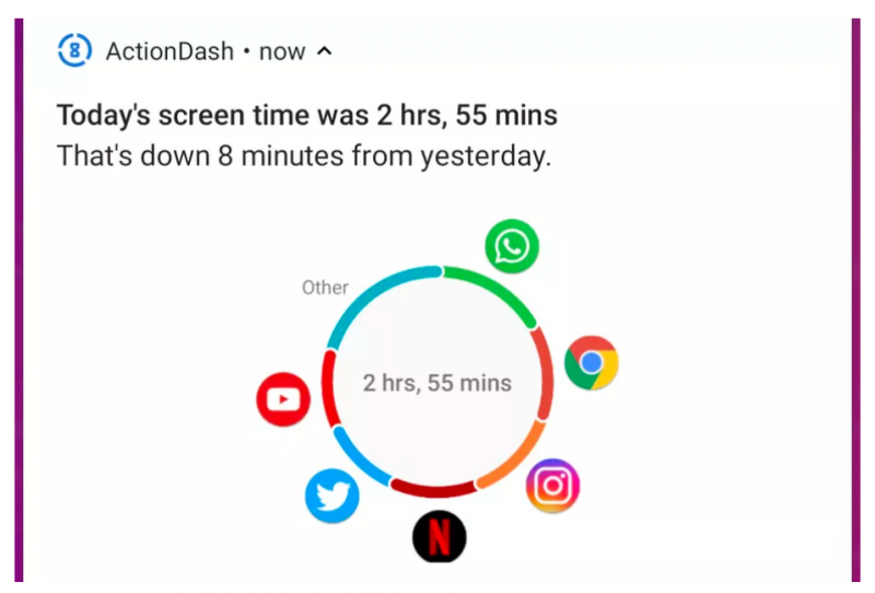 ახალი აპლიკაცია იყენებს Google-ის Digital Wellbeing ფუნქციას — სასარგებლო ინსტრუმენტების კრებულს, რომელიც აჩვენებს, თუ რომელი აპლიკაციის მოხმარებას მიაქვს ყველაზე მეტი დრო. ის განკუთვნილია Android-ის ყველა ტელეფონთვის და მისი სახელწოდებაა ActionDash. იგი შეიმუშავა იმავე კომპანიამ, რომელმაც გამოუშვა ადაპტაციის სისტემა Action Launcher. ActionDash აპლიკაციის გახსნისას თქვენ ხედავთ აპლიკაციების ჩამონათვალს, რომლითაც სარგებლობდით დღის განმავლობაში, ასევე იმას, თუ რამდენჯერ განბლოკეთ ტელეფონის ეკრანი ან რამდენი შეტყობინება მიიღეთ. ეკრანიდან ეკრანზე გადასვლისას შესაძლებელია ზემოაღნიშნული ინფორმაციის გაფილტვრა დღეებით, საათებით და აპლიკაციებით. ActionDash გამოიყურება თითქმის ისევე, როგორც Google-ის Digital Wellbeing-ი იმ მცირედი განსხვავებით, რომ მასში შეუძლებელია აპლიკაციის მოხმარების ლიმიტის დაწესება. მსგავსებაში ActionDash-სა და Digital Wellbeing-ს შორის არ უნდა ვხედავდეთ მხოლოდ ცუდს. ეს არის საშუალება, ერთმანეთისგან გავარჩიოთ თითოეულის პლუსი თუ მინუსი. მაგალითად, ActionDash-ში ნავიგაცია უფრო გამარტივებულია ეკრანზე ხელით მარცხნივ ან მარჯვნივ გადასვლით, მაშინ როცა Digital Wellbeing-ში გვხვდება ბევრი ჩამალული ეკრანი, თუმცა ფუნქციათა ნაკრები უფრო მეტად მოწესრიგებულია, რაც ადვილს ხდის გავიგოთ, თუ რომელი აპლიკაცია გვახარჯინებს ყველაზე მეტ დროს. ActionDash-ს Digital Wellbeing-თან შედარებით აქვს ერთი უპირატესობა - ის ყველასთვის ხელმისაწვდომია. Google-ის Digital Wellbeing განკუთვნულია მხოლოდ Pixel და Android One ტელეფონებისთვის, რაც ნიშნავს იმას, რომ მხოლოდ მომხმარებელთა მცირე ჯგუფს შეუძლია მისი გამოყენება. „შესაძლებლობა იმისა, რომ Google-ის ისეთი ფუნქციები, რომლებიც ლიმიტირებული ტელეფონებისთვის იყო შემუშავებული, ხელმისაწვდომი გამხდარიყო ყველა სხვა დანარჩენი მომხმარებლისთვის, ყოველთვის მიზიდავდა“ - აცხადებს ActionDash-ის შემქმნელი კრის ლეისი. მოსახმარებლად იოლი ინსტრუმენტი საშუალებას აძლევს ძველი Android-სმარტფონების მომხმარებლებს შეიგრძნონ, თითქოს მათ ხელში უკავიათ ახალი სმარტფონი Google-ის უახლესი ოპერაციული სისტემით. ActionDash-ს გააჩნია კიდევ რამდენიმე უპირატესობა Digital Wellbeing-თან შედარებით. მას აქვს ე.წ. მუქი ეკრანის რეჟიმი და შეუძლია ყოველი დღის ბოლოს სრული ინფორმაციის გამოტანა დღიური მოხმარების შესახებ მაშინ, როცა ეს უკანასკნელი შეზღუდულია იმით, რომ ინფორმაციის მისაღებად ყოველ ჯერზე საჭიროა აპლიკაციაში შესვლა. კრის ლეისი აცხადებს, რომ იგი ეძებს გზებს - თავის აპლიკაციას დაამატოს მთელი რიგი ფუნქციები. მაგალითად, აპლიკაციის მოხმარების ტაიმერი, რომელიც ასევე გააჩნია Digital Wellbe