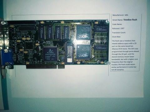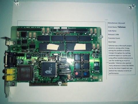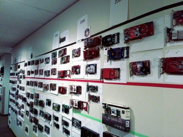 გრაფიკული ბარათების მრავალწლიანი წარმოების პროცესში Microsoft Direct3D-მ დიდი რაოდენობით ვიდეო ბარათი დააგროვა ტესტირებისას. რა თქმა უნდა, შეიძლებოდა გამოუყენებელი პროდუქტები ჩაეწყოთ ყუთებში და საწყობში გაეგზავნათ, მაგრამ მწარმოებლებმა შემდეგ გზას მიმართეს - მათ ოფისის დერეფნის კედლებზე მიამაგრეს გრაფიკული ბარათები, რის შედეგადაც სამუშაო ოფისი ერთგვარ მუზეუმად იქცა. Microsoft-ის ერთ-ერთი თანამშრომლის თქმით, კოლექციაში შესულია 402 GPU და საერთო ჯამში ისტორია მოიცავს ოცდათხუთმეტწლიან პერიოდს. ფოტოს წყარო: blogs.msdn.microsoft.com/directx კოლექცია ნამდვილად შთამბეჭდავია და მოიცავს საინტერესო პროდუქტებს. მასში შედის IBM-ის პირველი ვიდეო ბარათი ფერადი გამოსახულების მხარდაჭერით, რომელიც 1981 წელს გამოვიდა; 3D-ამაჩქარებელი Diamond Monster3D - 3dfx Voodoo ჩიპზე; ATI-ის ვიდეო ბარათი 3D Rage Pro All-in-Wonder; 1997 წელს გამოშვებული TriTech-ის GPU - Pyramid3D-ჩიპსეტის ბაზაზე; 3Dlabs-ის 3D-აქსელერატორი; 3dfx Voodoo Rush; Intel-ის პირველი გრაფიკული პროდუქტი i740, რომელიც გამოშვებულია 1998 წელს, 2001 წელს გამოსული NVIDIA-ს ვიდეო ბარათი და ა.შ. IBM CGA (Color Graphics Adapter) Diamond Monster 3D (3dfx Voodoo 1) ATI 3D Rage Pro All-in-Wonder TriTech Pyramid3D 3Dlabs Permedia 2 3dfx Voodoo Rush Intel i740 Microsoft Talisman nVidia GeForce 256 Matrox Millenium G400 S3 Savage 4 PowerVR Kyro 1 nVidia Xbox dev kit (GF3) nVidia GeForce 3 Ti 500 ATI Radeon 8500 Matrox Parhelia QID ATI Radeon 9800 Pro ფოტოების წყარო: blogs.msdn.microsoft.com/directx https://overclockers.ru/blog/id_1/show/23397/muzej-gpu-na-stenah-ofisa-komanda-direct3d-sobrala-potrjasajuschuju-kollekciju
