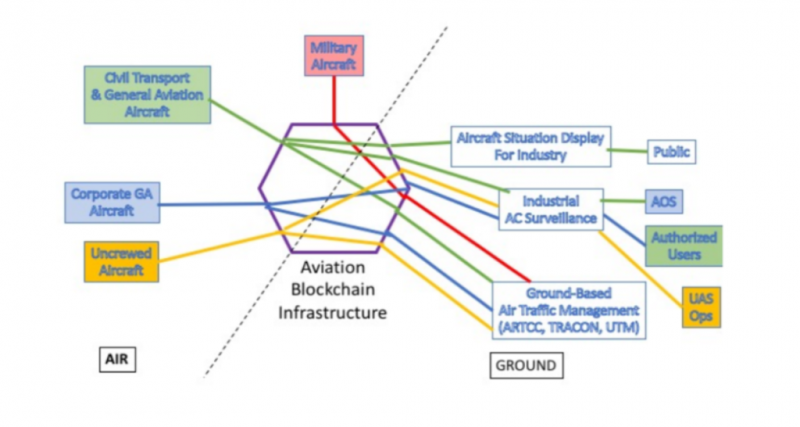 NASA - აერონავტიკისა და კოსმოსური სივრცის კვლევის ეროვნული სააგენტო - განიხილავს ბლოკჩეინ-ტექნოლოგიას, როგორც საავიაციო მონაცემების კონფიდენციალურობისა და უსაფრთხოების დაცვის საშუალებას. Ronald Reisman-მა - NASA-ს საავიაციო კომპიუტერების ინჟინერმა გამოაქვეყნა სტატია, სადაც ნათქვამია, რომ ბლოკჩეინი და სმარტ-კონტრაქტები შეძლებენ უსაფრთხოებასთან დაკავშირებული პრობლემების მოგვარებას. 2020 წლის 1 იანვრიდან აშშ-ის ფედერალურ საავიაციო ადმინისტრაციას ეძლევა მანდატი - გამოიყენოს ახალი სათვალთვალო სისტემა - Automatic Dependent Surveillance Broadcast (ADS- – (დამოუკიდებელი თვალთვალის ავტომატური სისტემა), რომელიც საჯაროდ გაავრცელებს ინფორმაციას საფრენი აპატარების იდენტიფიკაციის, ადგილმდებარეობისა და სხვა მონაცემების შესახებ. ამ ფაქტმა უსაფრთხოების თვალსაზრისით შეშფოთება გამოიწვია დაინტერესებულ მხარეებში - აცხადებს რეისმანი თავის დოკუმენტში. იგი განმარტავს, რომ სისტემა ADS-B „არ ითვალისწინებს თვითმფრინავების მონაცემების კონფიდენციალურობის დაცვას და რისკ-ფაქტორებს. ავიაკომპანიებს კი სურთ გარკვეული ინფორმაცია საიდუმლოდ დაიტოვონ“ - წერს რეისმანი. თავის მხრივ, სამხედრო ავიაციის მონაცემები თავდაცვის სამინისტროს მიერ განისაზღვრება, როგორც „ინფორმაცია, რომელიც გასაჯაროვების შემთხვევაში ინფრასტრუქტურის კრიტიკულ დაუცველობას გამოიწვევს და მისმა გამოყენებამ შესაძლოა განაპირობოს საკუთრების ან საშუალებების დაზიანება ან განადგურება“. ხსენებული ტიპის მონაცემების მგრძნობიარობის გათვალისწინებით, სამხედრო კონფიდენციალურობის დაცვა „გადამწყვეტი იქნება ADS-B პროგრამის დანერგვისას“ - აცხადებს რეისმანი. იმისათვის, რომ გადაიჭრას ზემოთხსენებულიც და სხვა პრობლემებიც, მკვლევარმა სტატიაში წარადგინა პროტოტიპი, სახელად Aviation Blockchain Infrastructure (ABI), რომელიც დაფუძნებულია Hyperledger Fabric-სა და სმარტ-კონტრაქტებზე. მისი საშუალებით შესაძლებელი იქნება გაკონტროლდეს - რა სახის მონაცემები შეიძლება გახდეს საჯარო ან უფლებამოსილ პირთათვის ხელმისაწვდომი. მაგალითად, იმგვარი ინფორმაცია საჰაერო ტრანსპორტის შესახებ, როგორიცაა სიმაღლე, სიჩქარე, კურსი და ა.შ. - შესაძლებელია ინახებოდეს უსაფრთხოდ კერძო არხზე პრივატულობის დაცვით. ინფორმაცია კი, რომელიც ეხება მითითებულ მარშრუტს, დანიშნულების ადგილს, ასევე საფრენი აპარატის ტიპს - დასაშვებია, რომ იყოს საჯარო და საყოველთაო არხზე ხელმისაწვდომი - ნებადართული პირებისთვის. რეისმანი აცხადებს: „ჩვენ გთავაზობთ „ნაწილობრივ ნებადართულ“ ბლოკჩეინ-სტრუქტურას, რათა ADS-B სისტე