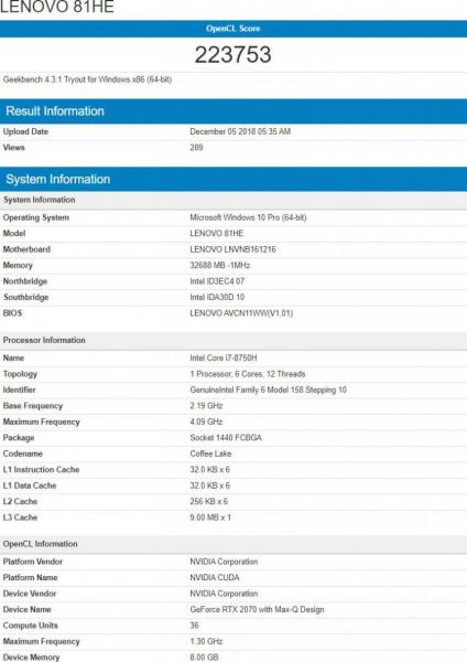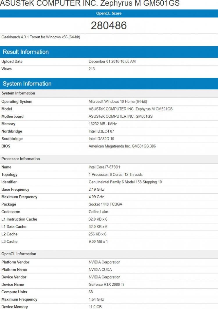 როგორც ცნობილია, NVIDIA GeForce RTX მობილური ამაჩქარებლების სერია წარდგენილი იქნება CES 2019-ზე, სადაც მსოფლიოს უმსხვილესი კომპანიები მოახდენენ თავიანთი სამომავლო ლეპტოპებისა და მონობლოკების დემონსტრირებას ახალი ვიდეო ბარათებით. ბოლო ინფორმაციით, წარმოდგენილი იქნება მინიმუმ სამი ჩვეულებრივი GPU და სამი - Max-Q ფორმატის ვიდეო ბარათი თხელი ლეპტოპებისთვის: NVIDIA GeForce RTX 2080 Ti Mobility; NVIDIA GeForce RTX 2080 Mobility; NVIDIA GeForce RTX 2080 Max-Q; NVIDIA GeForce RTX 2070 Max-Q; NVIDIA GeForce RTX 2060 Max-Q; NVIDIA GeForce RTX 2060 Mobility. ყველაზე ადრე, Turing-ის ბაზაზე არსებული მობილური ამაჩქარებელი GeForce RTX 2060 გამოჩნდა 3DMark-ის მონაცემთა ბაზაში. დიდი ალბათობით, მობილური ვარიანტიც იმავე კრისტალზე იქნება აგებული, რაზეც დესკტოპ-ვერსია. ვიდეო ბარათს ექნება 960 მჰც ტაქტის სიხშირე და 6 გიგაბაიტი GDDR6 ვიდეომეხსიერება, რომელიც იმუშავებს 192-ბიტიანი ინტერფეისით 1750 მჰც სიხშირეზე (ანუ, გამოყენებულია 14 გბიტი/წმ. ჩიპები). Max-Q ლეპტოპებისთვის განკუთვნილი GeForce RTX 2060 განსხვავებული მახასიათებლების მქონეა. გამოყენებულია ბირთვის უფრო მაღალი სიხშირე - 975 მჰც, თუმცა შემცირებულია მეხსიერების სამუშაო სიხშირე 1500 მეგაჰერცამდე (ანუ, გამოყენებულია 12 გბიტი/წმ. ჩიპები). როგორც ცნობილია, მობილური ბარათი შეძლებს 19 000 ქულის მოგროვებას, ე.ი გაცილებით ნელია, ვიდრე თანამედროვე მობილური ბარათი GeForce GTX 1070. Geekbench-ის შედეგების წყალობით ცნობილი გახდა GeForce RTX 2070 Max-Q-ის სავარაუდო მახასიათებლები: ამ ვიდეო ბარათს ექნება 2304 CUDA ბირთვი, რომლებიც მუშაობს 1300 მჰც სიხშირეზე და 8 გბ GDDR6 მეხსიერება. იგი განკუთვნილია მაღალი წარმადობის სისტემებისთვის. GeForce RTX 2080-ის შემთხვევაში, ცნობილი ხდება, რომ წარმოდგენილი იქნება ვარიანტები ჩვეულებრივი ლეპტოპებისა და ასევე Max-Q სისტემებისთვის. ორივე მოდიფიკაციას ექნება 2944 CUDA ბირთვი და 8 გბ GDDR6 მეხსიერება. ჩვეულებრივ ვარიანტს აქვს 1590 მჰც ტაქტის სიხშირე, Max-Q ვარიანტს კი - 1230 მჰც. ბარათებს ექნებათ მეხსიერების ანალოგიური კონფიგურაცია: Max-Q ვარიანტი წარმოდგენილი იქნება 12 გბიტი/წმ. ჩიპებით, ჩვეულებრივი ლეპტოპისთვის განკუთვნილი ბარათი კი - 14 გბიტი/წმ. ჩიპებით. აქვე უნდა აღინიშნოს, რომ სტანდარტული RTX 2080 ვარიანტი HP-ის ლეპტოპებზე მუშაობდა 8-ბირთვიან, 16-ნაკადიან Intel-ის პროცესორზე (მეცხრე თაობის Core i9 პროცესორი ტაქტის საბაზისო სიხშირით 2,1 გჰც და Boost-სიხშირით - 4,4 გჰც). და ბოლოს, გამოჩნდა ინფორმაცია GeForce RTX 2080 Ti ამაჩქარებლის შესახებ, რომელიც გამოიყენება ASUS Zephyrus M GM501GS ლეპტოპში. GeForce RTX 2080 Ti მობილურ ვერსიას აქვს 4352 CUDA ბირთვი, რომლებიც მუშაობს 1540 მჰც სიხშირეზე. ასევე აქვს 11 გბ GDDR6 მეხსიერება. საინტერესოა ის ფაქტი, რომ მობილური ვერსია მეტად ახლოსაა დეკტოპ-ვარიანტის მახასია