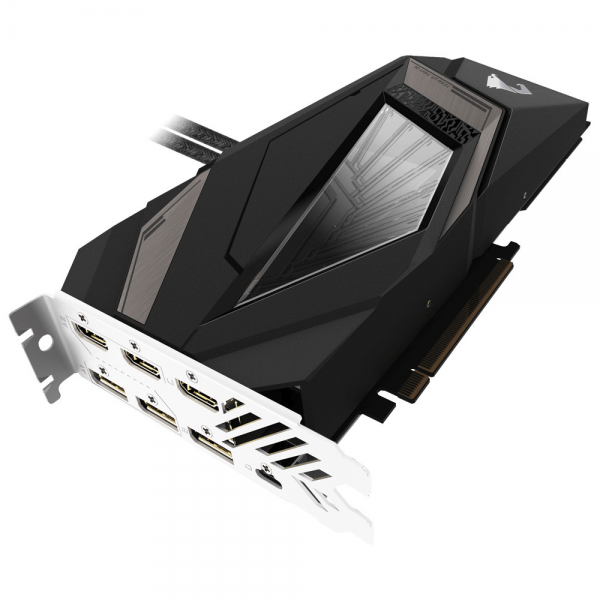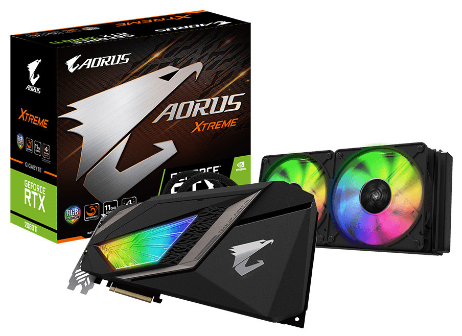 კომპანია Gigabyte-მა გამოუშვა ახალი ვიდეო ბარათი წყლით გაგრილების სისტემით - AORUS GeForce RTX 2080 Ti XTREME WATERFORCE 11G. ბარათი დაფარულია ოდნავ ამობურცული წყლის ბლოკით, რომელსაც განათებები აქვს ორ მხარეს. წყლის ბლოკი დამზადებულია კომპანია Asetek-ის მიერ. ბირთვის ქარხნული აჩქარება 1545-დან 1770 მეგაჰერცამდეა. მეხსიერების ოვერქლოქინგი აღწევს 14140 მეგაჰერცს, ნაცვლად სტანდარტული 14000 მეგაჰერცისა. ვიდეო ბარათის ზომებია 290 х 131 х 40 მმ. გაგრილებას უზრუნველყოფს 240 მილიმეტრიანი რადიატორი ორი 120 მილიმეტრიანი ვენტილატორით, რომლებიც წარმოდგენილია RGB განათებით. ბარათზე განთავსებულია 7 ვიდეოგამშვები, თუმცა ერთდროულად შვიდივეს გამოყენება დაუშვებელია. შესაძლებელია გამოყენება შემდეგი სქემების მიხედვით: 3xHDMI + 1xDP + 1xUSB-C ან 3xDP + 1xHDMI + 1xUSB-C. ტექნოლოგია RGB Fusion წარმოდგენილია განათების ფერების ცვლილების მრავალი შესაძლებლობით. განათებითაა მოცემული ასევე ფოლადისგან დამზადებული უკანა პანელი, რომელზეც განთავსებულია RGB AORUS ლოგო. ვიდეო ბარათის შეძენისას მწარმოებელი იძლევა ოთხწლიან გარანტიას. მისი ღირებულება 1400 აშშ დოლარიდან იწყება. https://overclockers.ru/blog/ddr77/show/22318/aorus-geforce-rtx-2080-ti-xtreme-waterforce-11g--novaja-vodjanaja-karta-ot-gigabyte
