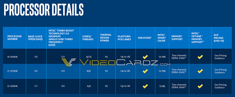 20. პროცესორებთან დაკავშირებული სიახლეების მოყვარულები მოუთმენლად ელიან CPU Coffee Lake Refresh-ის ლაინაფის გამოსვლას პლატფორმისთვის - LGA1151. წინასწარი ცნობების თანახმად, Intel Core-ის მე-9 თაობის ჩიპების სიაში შევა მოდელები: Core i9-9900K, Core i7-9700K, Core i5-9600K და Core i3-9350K. მათ, ვისაც განზრახული აქვს CPU Core i9-9900K ფლაგმანური პროცესორის შეძენა, მნიშვნელოვანი თანხის გადახდა მოუწევთ - მისი ღირებულება დაახლოებით 500 $-ია. კარგი სიახლე ისაა, რომ 8 ბირთვისა და მონაცემთა დამუშავების 16 ნაკადის წყალობით, შესაძლებელი იქნება დიდი ხნით დავივიწყოთ პლატფორმის „აფგრეიდის“ შესახებ. თუკი რაიმე მომენტში Core i9-9900K-ის მწარმოებლურობა არასაკმარისი აღმოჩნდება, შესაძლებელი იქნება მისი აჩქარება ეფექტური გაგრილების გზით. ჰონგკონგელმა ოვერქლოქერმა, ცნობილი გუნდის - HKEPC-ის წევრმა Lau Kin Lam-მა მოახდინა დემონსტრირება, თუ რა შესაძლებლობები გააჩნია LGA1151-ზე პროცესორებს, 5 გჰც სიხშირეზე (მისი boost-რეჟიმის შესაბამისად. ნომინალური სიხშირე 3,6 გჰც-ია). კონფიგურაციის დეტალების უმეტესობა გაუხმაურებელი დარჩა, თუმცა სარწმუნოა, რომ საქმე მხოლოდ ჰაერის გამაგრილებლით არ შემოიფარგლა. Core i9-9900K-მა 1.28 ძაბვის გამოყენებით დატვირთვაზე 2166 ქულა მოაგროვა Cinebench R15-ის მრავალნაკადიან ბენჩმარკ ტესტირებაზე. მიღებული შედეგი ბევრად აღემატება 6 ბირთვიანი და 12 ნაკადიანი პროცესორის - Core i7-8700K-ის მაჩვენებელს (1650 ქულა 5გჰც-ზე). ბირთვების რაოდენობის მატებამ განაპირობა მწარმოებლურობის ზრდა - და ეს ყველაფერი LGA115x პლატფორმის ფარგლებში, რომელიც ჯერ კიდევ გასულ წელს ვერ ახერხებდა ვერაფერი სერიოზულის შეთავაზებას, გარდა ოთხბირთვიანი Core i7-7700K პროცესორისა. Intel Core i9-9900K-ის წარმატებებმა დიდი ალბათობით უნდა მოახდინოს გავლენა AMD-ზე, რომ მან გამოუშვას 10 ან 12 ბირთვიანი პროცესორები იმავე ფასად (500$-ად), რამდენადაც 12 ბირთვიანი CPU Ryzen Threadripper 2920X-ის კონფიგურაცია ბევრად ძვირი ჯდება ჯერჯერობით. https://3dnews.ru/975446