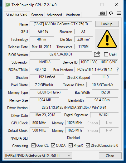 2. კი ვცადე Windows 10-ი მეყენა Windows 7-იც დავაყენე მარა მაინც იგივე პრობლემა იყო GPUZ-ს დავაყენებ და სურათს დავდებ ფეიკი ყოფილა ? ვიდეო დაფის სახელის წინ წერია