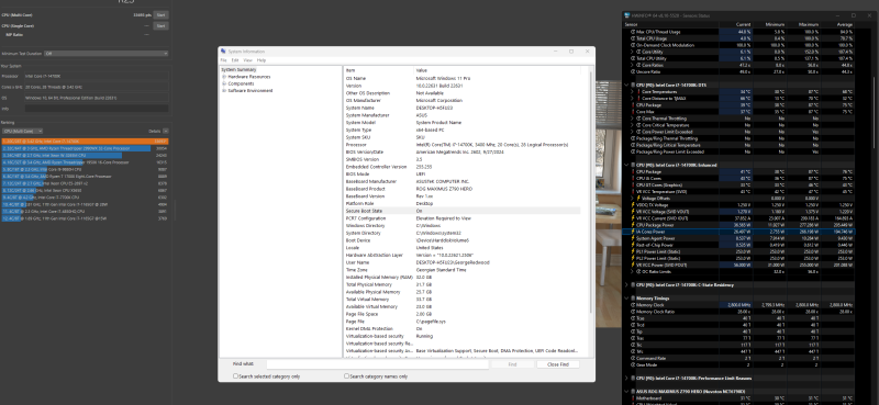 მარაზმატიკი ქაჯები არიან asus-შიც და intel-შიც ) ამნაირი ქაჯი პრობლემა არ მქონია არასოდეს არცერთი მწარმოებლის სისტემაზე აქამდე. Secure Boot-ს როცა ვრთავ პროცესორი ფეხებზე იკიდებს ყველანაირი ვატების ლიმიტს და 253-ზე 10-15 ვატით მაღლა ადის ნებისმიერ ბენჩმარკში. მოგახსენებთ რომ ინტელის რეკომენდირებული 253 ვატია თუმცა ჩემი ჯიგარი 265 ვატს ისე უკაკუნებს როგორც არაფერი მხოლოდ იმ შემთხვევაში თუ Secure Boot ჩართული მაქვს ბიოსიდან ეხლავ იღაცა იტყვის Secure boot რა ჩემს შაშაკოლად გინდაო მაგრამ არც მასე არაა საქმე ) ზოგიერთი კომპეტეტივ თამაშს აქვს ძლიერი ანტიჩეთი რომელიც ითხოვს Secure Boot-ის ჩართულ მდგომარეობაში ყოფნას...ასეთ თამაშებს მე ვთამაშობ სამწუხაროდ ) ყველაფერი ვცადე აი ნოლიდან ბიოსის გარესტება და მარტო Secure Boot-ის ჩართვისას ცდება 253 ვატს პროცესორი. არც ინტელს არუნდა აღიაროს ეს ბაგი არც ასუსს )) ორივე ფორუმზე გახსნილი მაქვს თემები სრული აღწერით და ორივე მათგანს ქინძზე კიდია. ბოლოს 3 ბიოსია მასეთ დღეშია მანამდე არც შემიმჩნევია ნუ ლოგიკურიცაა მანამდე ისედაც ყველანაირ ვატებს ცდებოდა ეს პროცოსრები და არ ვაკვირდებოდი რათქმანდა. ფრთხილად იყავით ვისაც ასუსის პლატაზე გაქვთ 14 თაობის პროცესორები ნუ მაინც არ მჯერა რომ თამაშებში 253 ვატს ცადება მაგრამ ნებისმიერი ბენჩმარკის დროს 253 ვატს ყველა ვარიანტში ცდება სამწუხაროდ. სურათები Secure boot ON and OFF