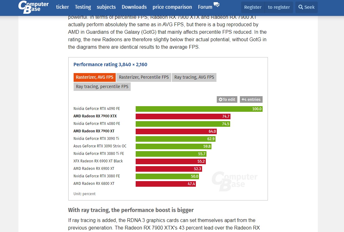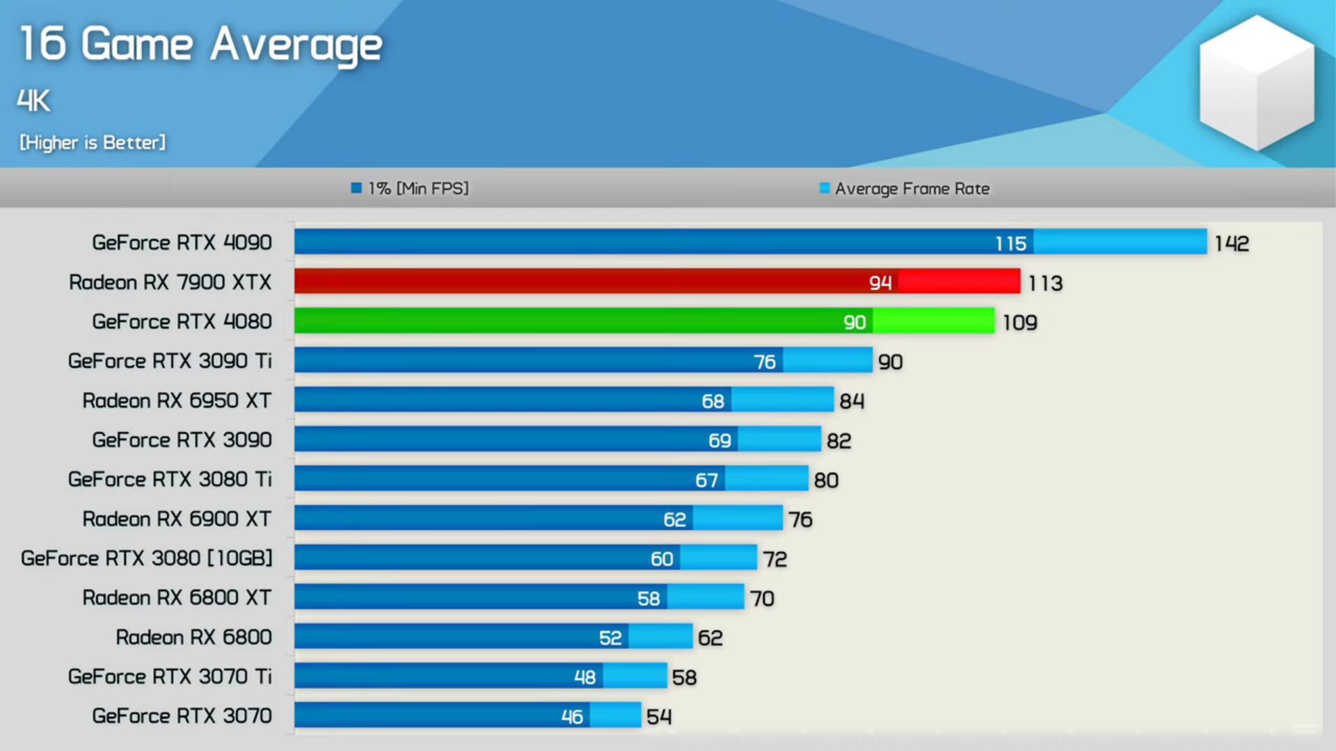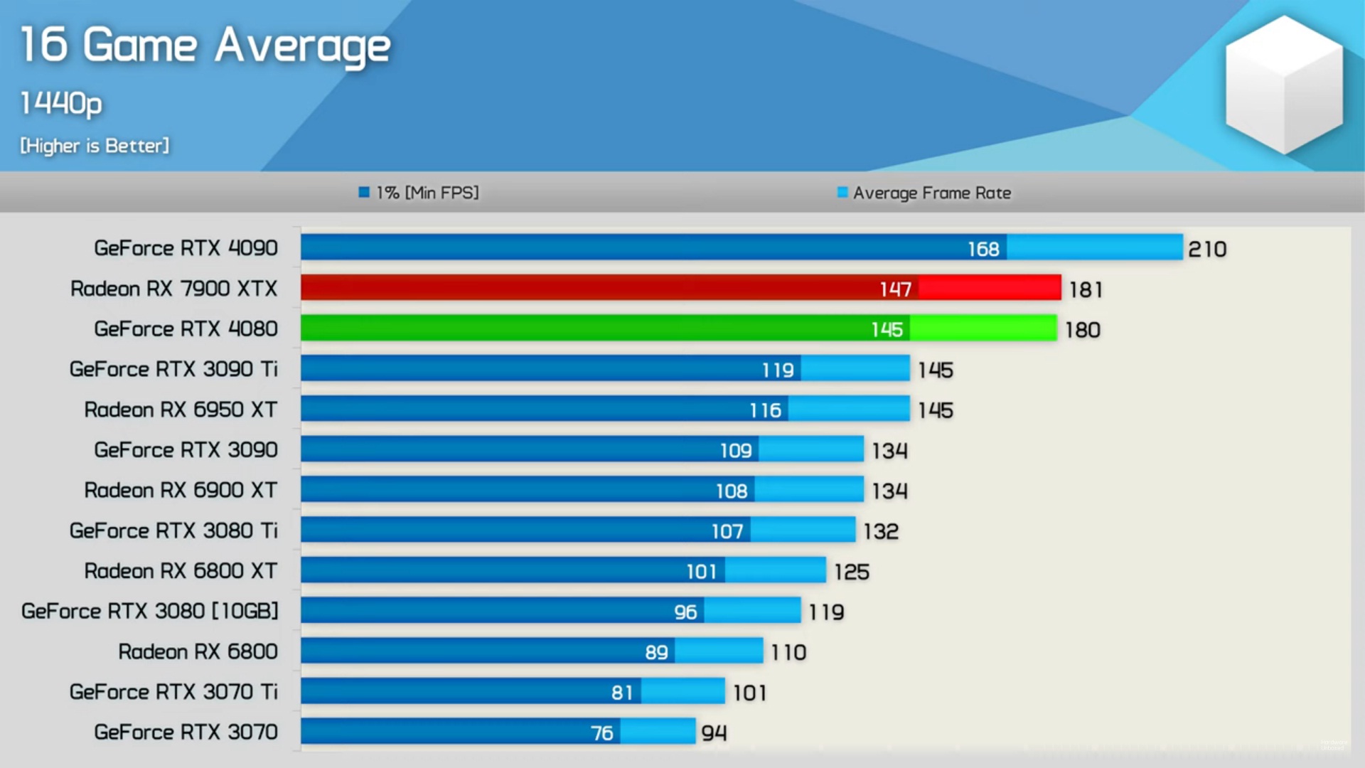 ვერც 3090TI-ს სჯობს და ვერც 4070TI-ს + ბევრად უკეთესი RT წარმადობა 1440-ში 4%-ით ჩამორჩება 100 დოლარით უფრო ძვირ 7900XT 4k-ში 7% უკეთეს cost per frame აქვს საერთოდ 4080, 4070 TI, 7900XTX,7900XT ყველაზე მოუწევთ ფასის დაკლება ადრე თუ გვიან გაყიდვებით თუ ვიმსჯელებთ ერთადერთი 4090 იყიდება ტემპში -