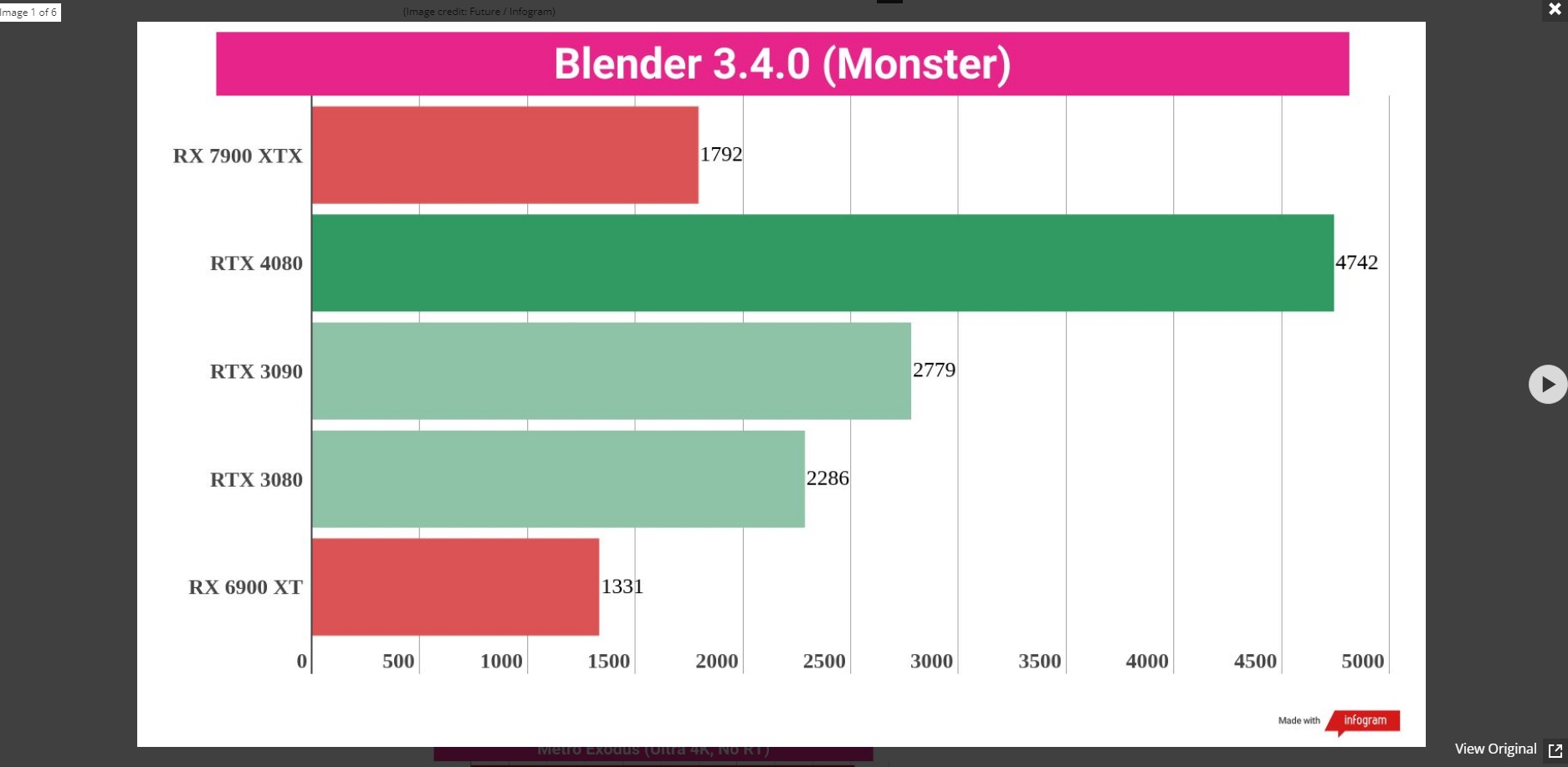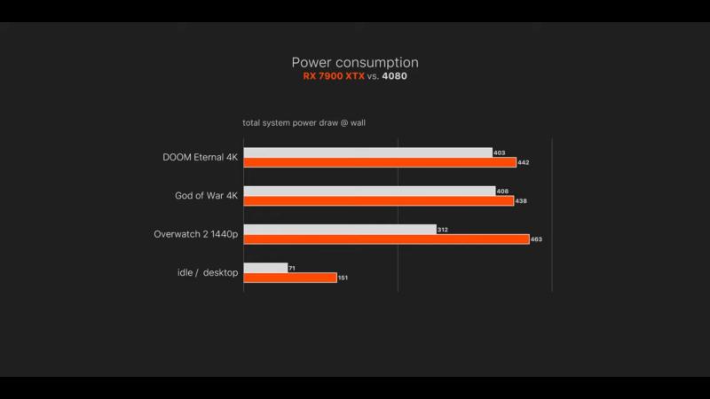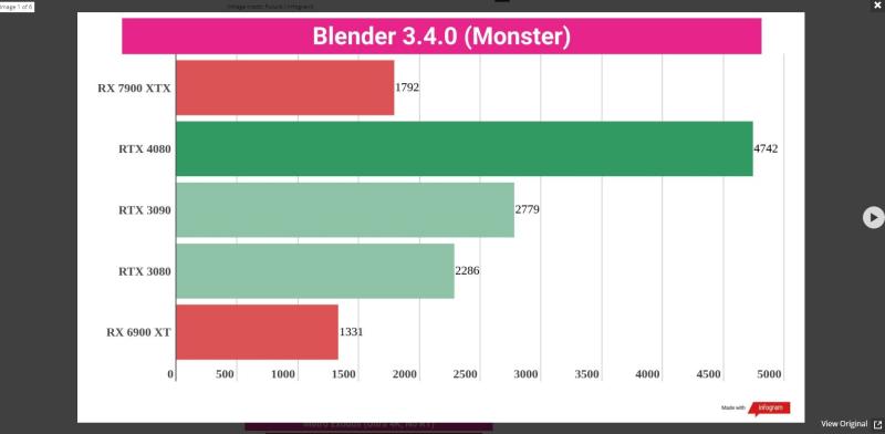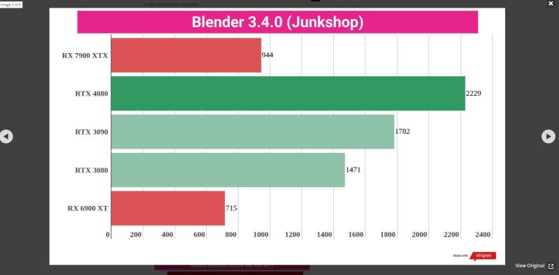 RT წარმადობა ან ჩამორჩება ან უკეთეს შემთხვევაში უტოლდება 3090TI-ს რესტერში პრაქტიკულად 4080-ის წარმადობაა რენდერში კატასტროფული ჩამორჩენა თვის შუაში 4080-ზე ფასის დაკლების ხმები თუ მართალი აღმოჩნდა საერთოდ არ ეღირება 7900XTX-ის ყიდვა 4080 1000-1050 დოლარი 7900XTX 800-850 დოლარი რამოდენიმე თვეში თუ უფრო ადრე არა ასე დალაგდება ამათი ფასები ვგონებ
