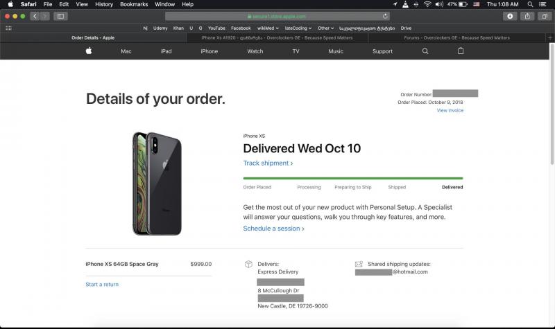 გუშინწინ გამოვიდა iOS 12.0.1 სადაც ზემოთხსენებული პრობლემა დაიფიქსა. აღარ დავაყოვნე და თამამად გამოვწერე თავიდან. :დდ მოკლედ როგორც ზევით დავპოსტე, თუ შიპინგთან დაკავშირებით შეგექმნათ პრობლემა, აშშ ეფლ საფორთში დარეკეთ ნომერზე +1(800)692-7753 (ვაიბერიდან უფასოა) და 2 წუთში მოაგვარებენ. პ.ს დახურეთ