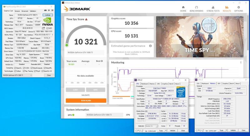 17. წინაისტორია: ჩემმა სამსახურმა "ჩამოწერა" ძველი კომპიუტერები და სერვერები. სანამ "დასაპრესად" გაუშვებდნენ, გადავხედე რამე ღირებული თუ იყო და ორი სისტემა ავარჩიე და ისინი თქვენს წინ არიან: Gigabyte GA-X79-UP4, Intel Core i7 3930k, DDR3 1600Mhz და Asus X99-A, Intel Core i7 5820k, DDR4 2666Mhz ვიდეოდაფები: 2 ცალი Zotac GTX 1080ti გაიტესტა მხოლოდ სლი ვარიანტში პროცესორი და ვიდეოდაფები "სტოკ" სიხშირეებზე: პროცესორები 4.4 Ghz-ზე, ვიდეოდაფები ოდნავ "ოვერქლოქზე": მუღამი და მიზანი იყო 4 way SLI X79 დედადაფაზე(ამ X99-ს არ აქვს 4 დაფის მხარდაჭერა) მაგრამ ვიდეოდაფები არიან AI-ზე ნამუშევარი 24/7-ზე და 9 ვიდეოდაფიდან ვერ შევარჩიე 4, რომ არ "დაქრაშულიყო" სლი-ში. ცალ-ცალკე გადიოდნენ ტესტს. ესა რაცაა. ბენჩმარკების განყოფილებაში ახალ ტესტების შედეგებს დავდებ სადაც 5820k-ს 8-თავიანი უფროსი ძმა-დევი 5960x ჩაანაცვლებს და თერმოინტერფესად Thermal Grizzly Conductonaut იქნება. ვეცდები მაქსიმუმი გამოვწურო ჰაერზე