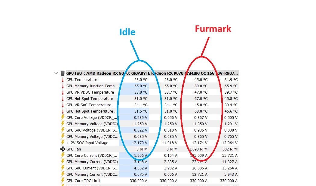 7. მოკლედ, დღეს ჩამომივიდა Gigabyte RX 9070 Gaming OC. წარმადობით იდეალური კარტაა. თუმცა ტემპერატურები რომ შევამოწმე, ჰოთსპოტი ფურმარკში 67-ს არ სცილდებოდა, ჯამური ტემპერატურა კი 48 გრადუსი იყო მაქსიმუმი. აი VRM ტემპერატურა იყო მაქსიმუმ 88, idle-ზე 54 გრადუსი . ეგრევე გამოვიწერე 1,5მმ-იანი Thermalright Extreme Odyssey II. რომ გავხსენი თერმო გელის ბალიშები დამხვდა. მოვასუფტავე და ნაყიდი ბალიშები. ფურმარკში 80 გრადუსზე ჩამოვიდა მაქსიმუმ, მაგრამ idle მაინც მაღალია (58 გრადუსი). თქვენ რას მირჩევთ, დავტოვო როგორც არის? VRM-ითვის ნორმალური ტემპერატურაა? თუ არადა ვინმე გამოცდილ ტიპს მოვაგვარებინო ეგ პრობლემა?