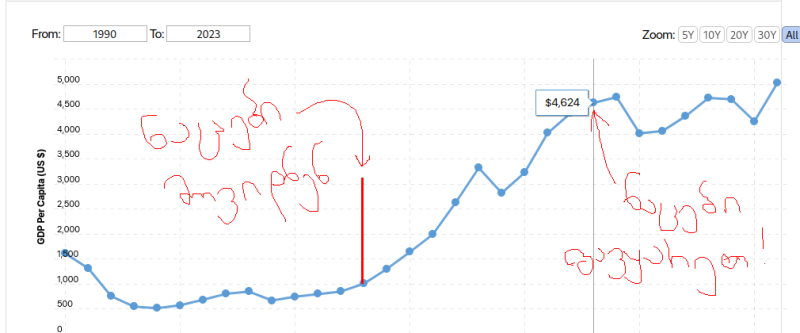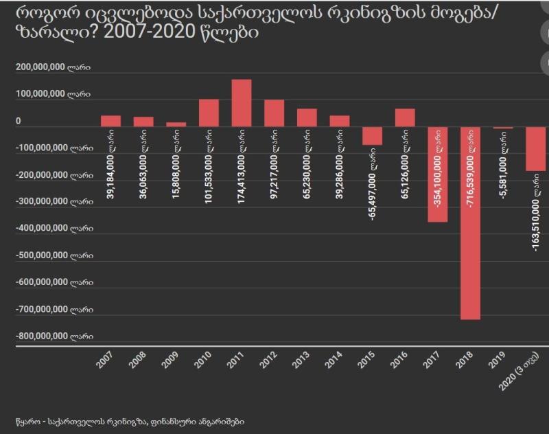 გიო აი ძაან ჰაერზე გყვარებია თქმა და ქოცების ნათქვამ სისულელეებს იმეორებ ძმაო. რა დაგვხიეს 15 წლით უკან ეკონომიკურად? დაწერე კონკრეტული რიცხვები. ეკონომიკას კონკრეტული რიცხვები უყვარს. რა იყო 15 წლით წინ 2008-მდე ეკონომიკა და რა იყო მას მერე დაწერე და შევადაროთ. 96$ იყო ნაცების პენსიის პიკი. 100$ იყო პირობა და 96%-თ შესრულდა ეგ პირობა. ეხლა ეს არის ფაქტი და შენ როგორც გინდა ისე ატრიალე. სხვათაშორის ნაცების 96$ ქოცებმა 2019 წლამდე შეამცირეს კიდეც, რაღაც მომენტში 70$-ზეც კი იყო ჩამოსული. ანუ ნაცების წასვლიდან 2019 წლამდე უფრო ნაკლები ქონდა ხალხს პენსია მსყიდველუნარიანობით ვიდრე მანამდე, რადგან ფასები იმატებდა და პენსია გაცილებით ნაკლებად მატულობდა. 3 წელი ზედიზედ სულ არ აუწევიათ. დღეს რომ 295 ლარია შეადარე მსყიდველუნარიანობით მაშინდელ იმ 96$-ს. აქ არ ცხოვრობ? რა ღირს სურსათ სანოვაგე წამლები რამდენჯერაა გაძვირებული რაზეა საერთოდ ლაპარაკი? რა დატოვეს დაწერე კონკრეტულად. რაც დატოვეს ვალი იმაზე 3+ ჯერ მეტი გვაქვს დღეს ვალი! სად წავიდა რას მოხმარდა ეს ფული? GDP per capita 4600$-მდე იყო ნაცების წასვლისას. დღეს რამდენია იცი? 2021-ში იყო 5000$ და შენ ამბობ ნაცებმა დაანგრიესო. აგერ ძმაო შეხედე ამ გრაფიკს. ამაზე ამბობ დანგრეული დატოვესო ეკონომიკაო? რაღაც ისე გამომდის გეგონება ნაცებს ვიცავო. უბრალოდ მეზიზღებაო ნაცებიო და ზღაპრებს წერ ძმაო. არაფერი დანგრეული არ დაუტოვებიათ ეკონომიკურად ძალიან წინ წასული ვიყავით და ზუსტად ეგ ეკონომიკა შემცირდა მომდევნო წლებში ამას გრაფიკშიც ხედავ. ბოლო წლებში ამოიქაჩა კიდევ და ეხლა მითუმეტეს რომ ამდენი ფული შემოდინდა, თორემ ქოცების პირველ წლებში დედა ეტირა. სულ მოსახლეზე შემცირებულიც კი იყო 4300 $-მდე. ანუ 2012-ში რაც დატოვეს ნაცებმა იმაზე უარესი სიტუაციაც კი იყო მომდევნო წლებში. ასეთივე გრაფიკია ბიუჯეტში. რომ მოვიდნენ ფაქტობრივად არ გვქონდა და კოლოსალურად გაზარდეს. მერე ქოცებმა მომენტში შეამცირეს კიდეც ისე დედა ეტირა ეკონომიკას და ჩვენს ვალუტას. აი ვალის გრაფიკი კი პირიქითაა. ნაცებმა რაც დატოვეს ეხლა ბეეეევრად უფრო მაღალია. ანუ 3+ ჯერ მეტი გვაქვს ეხლა ვალი. ეგ ფული ჩემი შენი და ჩვენი სხვების და ისევ ამ ქვეყნის შთამომავლების გადასახდელია. საშვილიშვილო ვალი დაგვადეს ქოცებმა. ა აგერ ქვეყნის რკინიგზას რა უქნა დაჩი ცაგურიამ და სხვა ქოცებმა. ეს დაჩი ცაგურია ისაა აი შენ რომ 30 000$-ებს ჭამდაო რესტორანში მაგას რომ პირველი გაჰყვიროდა ქუჩაში. მოაჯდა კარმუშკას 5 ნიშნა ხელფას დანამატებს და აგერ ძმაო შედეგი. 2007-2012 წლებში მუდამ მოგებაზე გადიოდა და აგერ ხედავ 2 წელში მილიარდზე მეტ