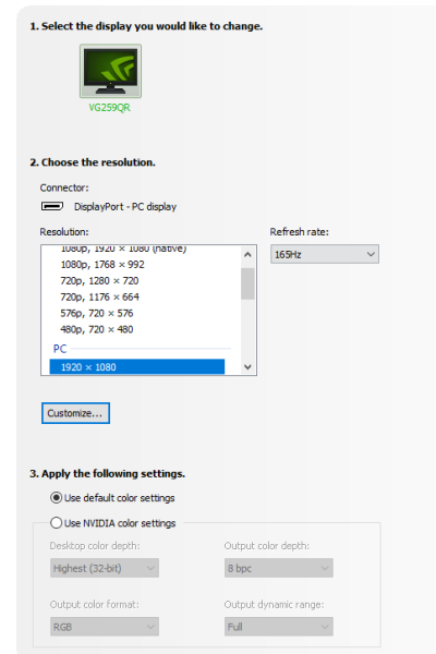 სად ვნახო ეს? ჩემთან ესეა 1.4_ზე თუა ეგ სად ვნახო? და თან 8 ბიტზეა ჩემთან იქნებ არცა აქ ჩემ მონიტორს მაგის მხარდაჭერა? ესაა ჩემი მონიკი TUF GAMING VG259QR - Review|Monitors|ASUS Global -