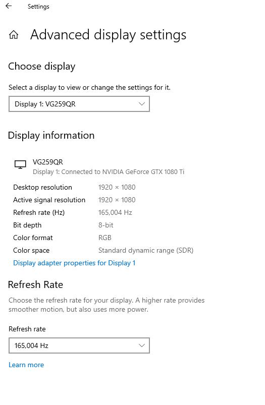 მოკლედ ჩავაყენე ჩემ კომპში gtx 1080 ti დისპლეი პორტზე მივაერთე და დადგა 165 ჰერცზე მაგრამ როგორც ჩანს 10 ბიტზე არ დგება ხო? კიდე რა მაინტერესებს იცი ამ მონიტორს აქვს g-sync compatible ready როგორც წინა გვერძე დავწერე და რატო მიწერს ნვიდიას პანელში რომ არ აქ? დისპლეი პორტი 1.4_ზეა თუ არა საიდან ვნახო? ეს საჭიროა რო დაყენდეს? 165 ჰერცზე კი დაყენდა თავისით მარა 1.4 ზეა თუ არა საიდან ვნახო? ან 10 ბიტზე რატო არ ყენდება? -