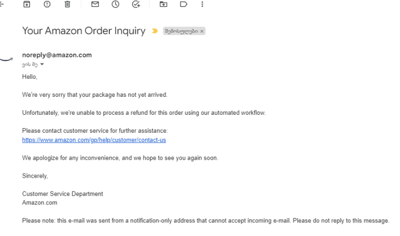 22. ერთი ჩათლახური კითხვა დამებადა და თუ გქონიათ გამოცდილება ვინმეს კაროჩე, ნივთი მისულია და გზაშია უკვე, მარა ამაზონზე არაა ასახული და წერს Your package may be lost. ამ დროს რო რეფუნდი მისცე, დაგერიცხება და შეგრჩება თუ როგორაა საქმე?