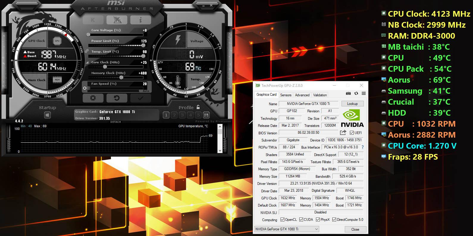 Mazo Posted April 29, 2018 Posted April 29, 2018 Mazo - 22333 - GIGABYTE GTX 1080 TI AORUS XTREME @ (1626/1478)/ i7 6800K 3.4GHz @ 4.12 Ghz Photo +19 ქორზე და +295 მემორიზე თ უმცა საკმაოდ მცირე სხვაობა მისცა ბენჩში თაიმ სპაიზე უკეთესი შედეგი დადო. ანუ ეს ბუსტი ხან 2000 ზე ადის ხან 1960 ზე ანუ ესე ცვალებადი როა შედეგებიც გამომდინარეობს ერთნაერ ნასტროიკაზე სხვადასხვა ამიტომ? Quote