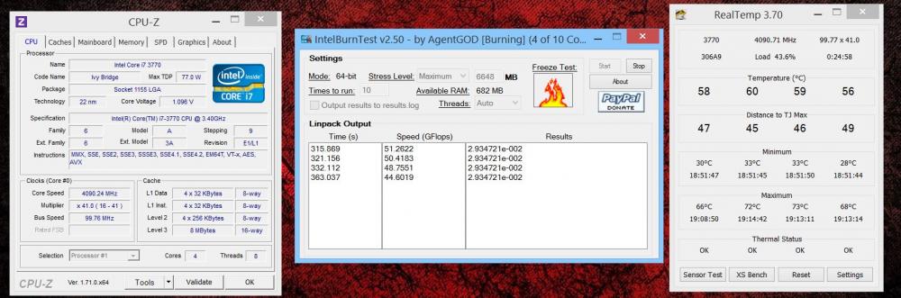 მათე Posted July 18, 2014 Posted July 18, 2014 ტყუილად აწვალე პროცესორი. bf3 ultra-ზე 100% ნაღდად ვერ დაგრუზავდა პროციკას და აგერ ჩემსაზე ახლახანს 10 წუთიანი ტესტი გავუშვი სტოკზე და ესეც შედეგი 8-ვე ნაკადი 100%-ზე სიხშირე 3.9 GHZ max ჩემ ოთახშიც ძალიან ცხელა და თან გაგრილება 35-ლარად ნაყიდი contac 29 მაქ ესეც არაფერს როცა არ ვაკეთებ ტემპოები Quote
