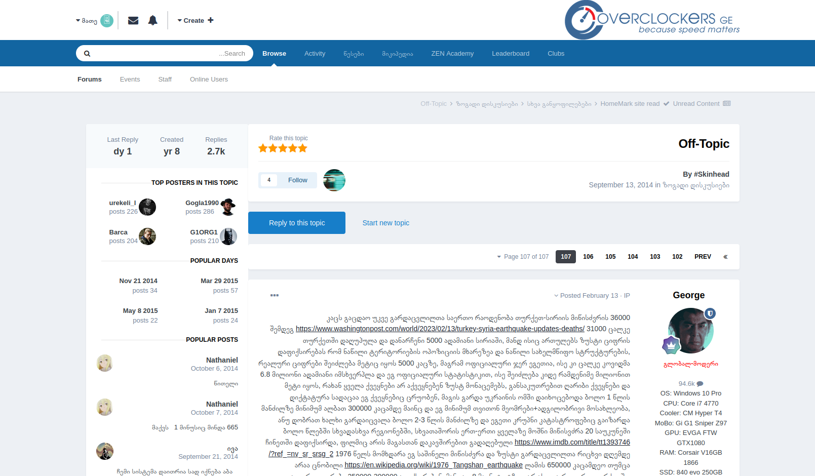 George Posted February 13, 2023 Posted February 13, 2023 36000 კაცს გაცდაო უკვე გარდაცვლილთა საერთო რაოდენობა თურქეთ-სირიის მიწისძვრის შემდეგ https://www.washingtonpost.com/world/2023/02/13/turkey-syria-earthquake-updates-deaths/ 31000 ცალკე თურქეთში დაღუპულა და დანარჩენი 5000 ადამიანი სირიაში, მანდ ისიც ართულებს ზუსტი ციფრის დაფიქსირებას რომ ნაწილი ტერიტორიების ოპოზიციის მხარეზეა და ნაწილი სახელმწიფო სტრუქტურების, რეალური ციფრები შეიძლება მეტიც იყოს 5000 კაცზე, მაგრამ ოფიციალური ჯერ ეგეთია, ისე კი ცალკე კოვიდმა 6.8 მილიონი ადამიანი იმსხვერპლა და ეგ ოფიციალური სტატისტიკით, ისე შეიძლება კიდე რამდენიმე მილიონით მეტი იყოს, რახან ყველა ქვეყნები არ აქვეყნებენ ზუსტ მონაცემებს, განსაკუთრებით ღარიბი ქვეყნები და დიქტატურა სადაცაა ეგ ქვეყნებიც ცრუობენ, მაგის გარდა უკრაინის ომში დაიხოცებოდა ბოლო 1 წლის მანძილზე მინიმუმ ალბათ 300000 კაცამდე მაინც და ეგ მინიმუმ თვითონ მეომრები+ადგილობრივი მოსახლეობა, ანუ დობრათ ხალხი გარდაიცვალა ბოლო 2-3 წლის მანძილზე და ეგეთი კრუპნი კატასტროფებიც გაიზარდა ბოლო წლებში სხვადასხვა რეგიონებში, სხვათაშორის ერთ-ერთი ყველაზე მოშნი მიწისვძრა 20 საუკუნეში ჩინეთში დაფიქსირდა, ფილმიც არის მაგასთან დაკავშირებით გადაღებული https://www.imdb.com/title/tt1393746/?ref_=nv_sr_srsg_2 1976 წელს მომხდარა ეგ საშინელი მიწისძვრა და ზუსტი გარდაცვლილთა რიცხვი დღემდე არაა ცნობილი https://en.wikipedia.org/wiki/1976_Tangshan_earthquake ლამის 650000 კაცამდეო თუმცა ოფიციალური ციფრები 250000-300000 აფიქსირებენ, მანდაც 8 მაგნიტუტზეც არ ასულა როგორც თურქეთში, მაგრამ ძალზე დიდი ნგრევა გამოიწვია და დობრათ ხალხი მოყვა ნანგრევებში როგორც ეხლა თურქეთში, იგივე იაპონიაში 9 მაგნიტუტიანი მიწისძვრები არც ისეთი იშვიათი მოვლენაა ან მინიმუმ 8 და ზევით, მაგრამ მსხვერპლი მინიმალურია რახან გაცილებით გამძლე სახლებს აშენებენ უკვე დიდი ხანია იაპონელები, ფაქტიურათ რელსებზეა სახლი და მიწისძვრის დროს დაგორაობას აქეთ იქით და არ ინგრევიან უზარმაზარი 100 სართულიანი შენობები, სამშენებლო კომპანიების უფროსების დაჭერა დაიწყეს თურქეთში ვინც ცუდათ ააშენა დიდი კორპუსები და გააყალბა რაღაცეები, აეროპორტში ჩაავლესო რამდენიმეს უკვე, სამუდამო ციხე არ აცდება ბევრს, რახან ძალიან ბევრი ხალხი დაიხოცა მაგ სახლებში Quote