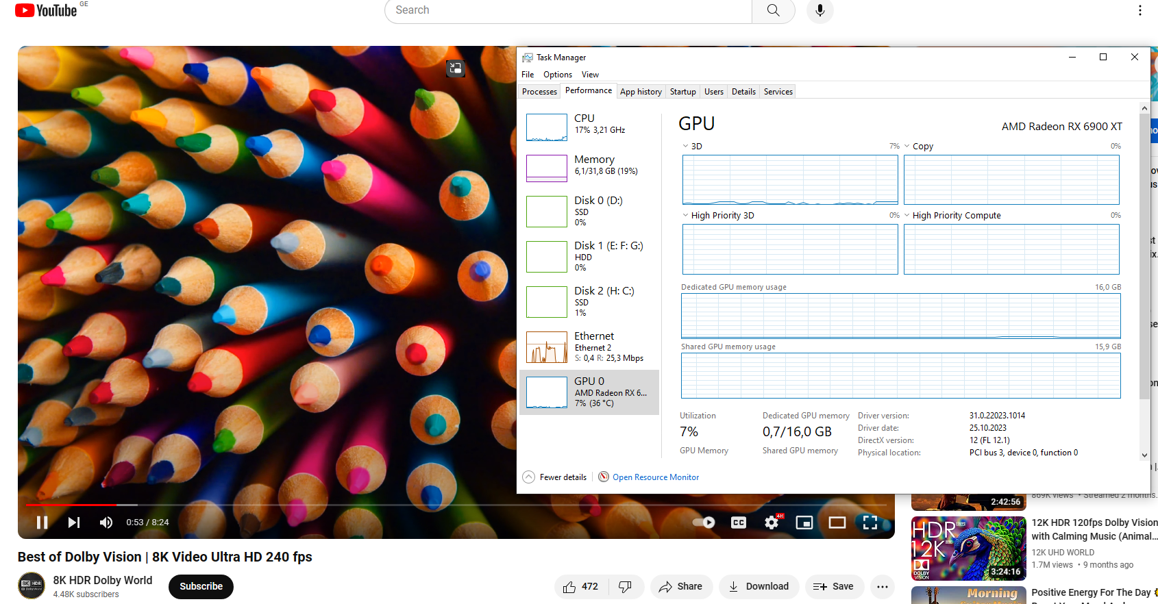 Gogla1990 Posted December 16, 2023 Posted December 16, 2023 მაგალითად ძველი პროცესორით იუთუბზე მაღალი გაფართოება/ხარისხის ვიდეოების ყურება უკვე შეუძლებელია, არ ძალუძს ძველ პროცესორებს 4 და 8K ვიდეოების დამუშავება, ეგ კი არა გუგლი ისე გაღორდა რომ ნორმალურად ვიზუალსაც ვერარ ამუშავებს ბევრ საიტზე რომელზეც ბევრი რეკლამა ან მოძრავი ობიექტია, ამ დროს საკმარისია რამე ცოტა თანამედროვე ვიდეოკარტა მიუყენო და მაგ ფუნქციის დახმარებით უმეტეს დატვირთვას ვიდეო ითავებს და ბევრად მარტივად გააკეთებს ვიდრე პროცესორი მაგალითის ჩვენება მინდოდა, მაგრამ აშკარად არ გამოვიდა ნათლად, პროციც ახალია და მაგიტომ არაა თვალსაჩინო სხვაობა პ.ს გუგლ ქრომს არ ძალუძს უმეტესი 8კ ვიდეოების გაშვება, ეჯდი უშვებს უპრობლემოდ 1 Quote