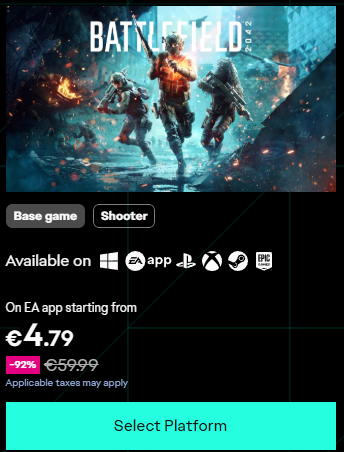 rრუსეთიდან თუ შეხვალთ ორიჯინზე battlefiel 4 და  hardline 4$ ღირს ხოლო battlefield 1 45$ ნაცვლად 79 ევროსი