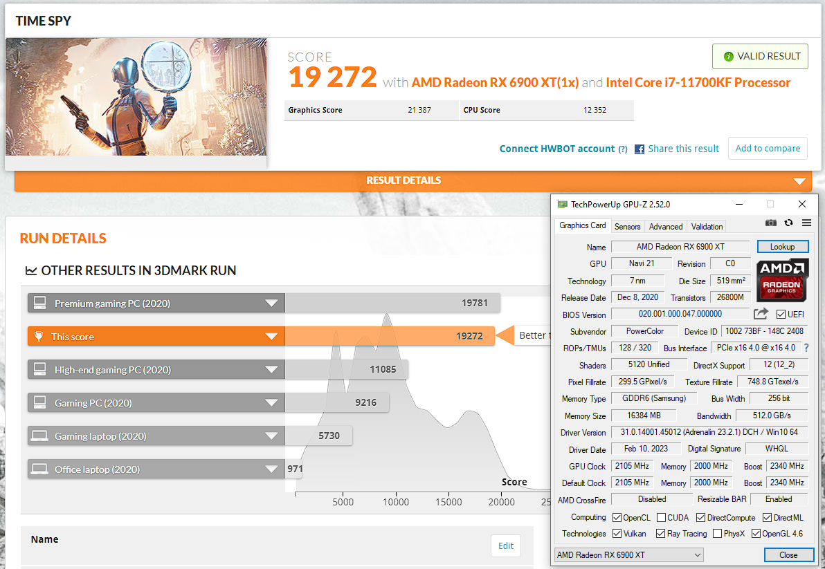 Fatal Fighter Posted February 23, 2023 Author Posted February 23, 2023 17 minutes ago, G1ORG1 said: მეგონა უფრო მეტს დადებდა :დ გაცილებით უკეთესი რაზგონის პოტენციალი აქვს მაგ კარტას ვიდრე ჩემსას, მე რაც დავდე ჩათვალე მაქსიმუმია, შენი კარტა ახლა 32-მდე ავა თავს დავდებ ნიტრო 34-მდე ქაჩავს ტოპ100-ში ყველაზე დაბალი 33კ არის გპუ ქულა https://www.3dmark.com/search#advanced?test=spy P&cpuId=&gpuId=1526&gpuCount=0&gpuType=ALL&deviceType=ALL&storageModel=ALL&memoryChannels=0&country=&scoreType=overallScore&hofMode=false&showInvalidResults=false&freeParams=&minGpuCoreClock=&maxGpuCoreClock=&minGpuMemClock=&maxGpuMemClock=&minCpuClock=&maxCpuClock= 1 Quote