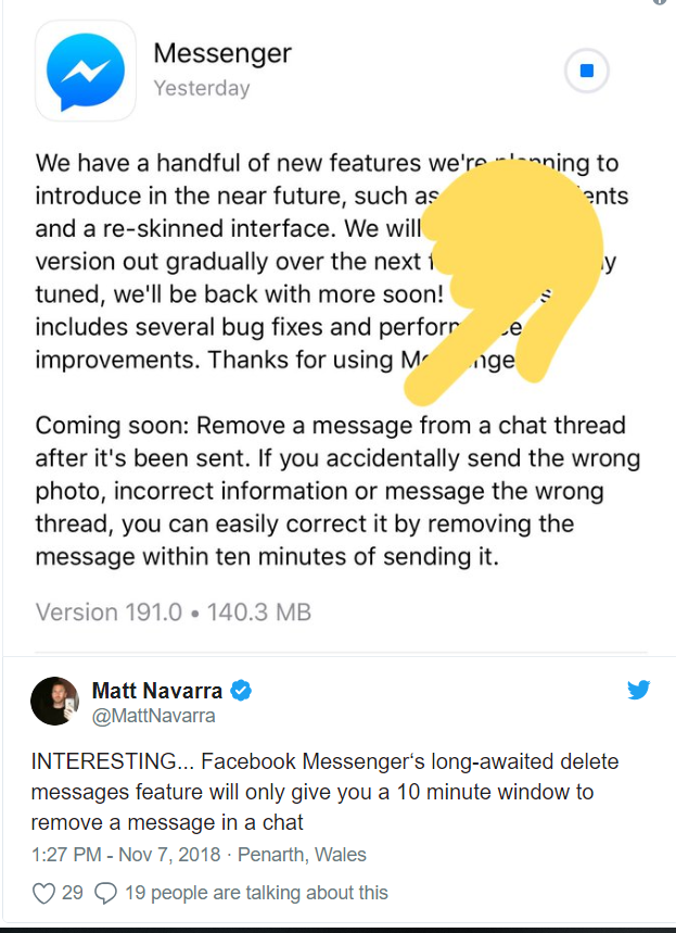 Magdalena Posted November 8, 2018 Posted November 8, 2018 ცნობილი გახდა Facebook Messenger-ის Unsend ფუნქციის დეტალების შესახებ: მომხმარებლებს საშუალება ექნებათ 10 წუთის განმავლობაში წაშალონ გაგზავნილი შეტყობინება. Facebook-ი WhatsApp-ის მომხამრებელს ერთ საათს აძლევს მცდარი შეტყობინების წასაშლელად, ამასთან შედარებით 10 წუთი საკმაოდ მცირეა, თუმცა ეს პირობა უკეთესია, ვიდრე ამ დრომდე არსებული ვითარება, როდესაც მცდარი და არასასურველი შეტყობინებები სამუდამოდ რჩებოდა მიმღების ინბოქსში. Messenger-ის Unsend ფუნქციის შესახებ ხმები პირველად გაჟღერდა აპრილში, მას შემდეგ, რაც Facebook-მა აღიარა, რომ უპრობლემოდ მოხდა მარკ ცუკერბერგისთვის გაგზავნილი შეტყობინებების წაშლა. ფუნქციონალურობა კი პირველად აღმოჩენილ იქნა ოქტომბერში, ტესტირების დროს. https://www.theverge.com Quote