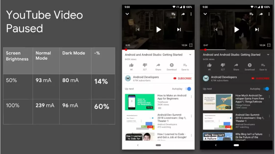 Magdalena Posted November 11, 2018 Posted November 11, 2018 დიდი ხანია ცნობილია, რომ ღამის რეჟიმის საშუალებით იზრდება ბატარეების მუშაობის ხანგრძლივობა OLED დისპლეის მქონე სმარტფონებში, საუბარი ეხება Android-საც და iPhone-საც. ხანგრძლივობის მატება დაკავშირებულია შემდეგთან: ცალკეულ პიქსელებს ნაკლები დატვირთვის აქტივობა უწევთ ეკრანის ჩაბნელებულ სივრცეებში, აქტივობა მინიმალურია შავ ფერზე გამოსახულების ასახვის დროს. Android Dev Summit-ზე Google-მა განაცხადა ამ ფაქტის შესახებ და წარადგინა რამოდენიმე სლაიდი, სადაც ნაჩვენები და შედარებული იყო ენერგომოხმარება სხვადასხვა ფერთა გამოყენების შემთხვევაში. ფოტოზე შეგვიძლია ვნახოთ, რომ ყველაზე მეტ ენერგიას თეთრი ფერი საჭიროებს, ამის გამო Google-მა აღიარა, რომ თეთრის დომინანტობა მის აპლიკაციებში - იდეალურისგან შორსაა. კომპანია ხაზს უსვამს ღამის რეჟიმის ღირსებებს. YouTube-ზე უკვე ვიხილეთ ამგვარი რეჟიმი, კომპანია უკვე ტესტავს მას მობილური Google Feed-ისთვის, სისტემაში ღამის რეჟიმის გააქტიურებამდე კი საქმე ჯერ არ მისულა (ამას გეგმავს Samsung-ი ახალ One UI-ში). უზარმაზარი სხვაობაა ბატარეის გამძლეობის კუთხით ჩვეულებრივსა და ღამის რეჟიმებს შორის. გარდა ამისა, უამრავი მომხმარებლისთვის ბევრად კომფორტულია მოწყობილობების ჩაბნელებულ რეჟიმში მოხმარება ნაკლები სიკაშკაშის გამო. https://www.theverge.com/2018/11/8/18076502/google-dark-mode-android-battery-life 1 Quote