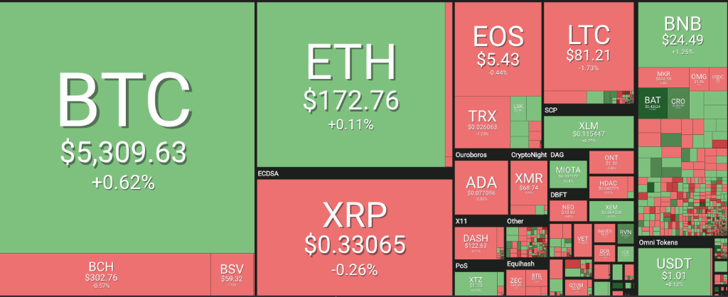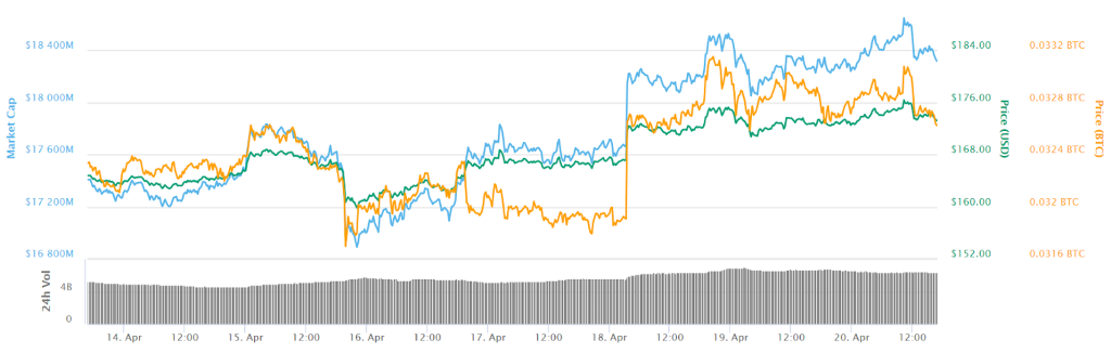 Magdalena Posted April 22, 2019 Posted April 22, 2019 ტოპ-20 კრიპტოვალუტაზე უმნიშვნელო მოგებები და 2%-მდე დანაკარგები შეინიშნება, Bitcoin-ი 5300 დოლარიან ნიშნულს ზევითაა. ბაზრის ვიზუალიზაცია CoinMarketCap-ის მონაცემებით, Bitcoin-ი ერთ დღეში 1%-ით გაიზარდა და წერის მომენტში 5342 დოლარად იყიდებოდა. კვირეული გრაფიკის თანახმად კრიპტოვალუტის ფასი 5%-ით გაიზარდა. Bitcoin-ის შვიდდღიანი გრაფიკი. წყარო: CoinMarketCap Ether (ETH) ინარჩუნებს ბაზრის კაპიტალიზაციის მიხედვით თავის ლიდერ პოზიციას Altcoin-ებში - კაპიტალიზაციის მაჩვენებელი თითქმის 18,3 მილიარდ დოლარს შეადგენს. სიდიდით მეორე Altcoin-ი XRP წერის მომენტში წარმოდგენილი იყო 13,8 მლრდ დოლარიანი ბაზრის კაპიტალიზაციით. CoinMarketCap-ს მონაცემები გვიჩვენებს, რომ ETH დაახლოებით ნახევარი პროცენტით გაიზარდა ბოლო 24 საათის განმავლობაში. წერის პერიოდში იგი დაახლოებით 173 დოლარად იყიდებოდა. კვირეული გრაფიკის მიხედვით, ETH-ის ფასი თითქმის 6%-ით გაიზარდა. ETH-ის შვიდდღიანი გრაფიკი. წყარო: CoinMarketCap XRP პირიქით შემცირდა დაახლოებით ნახევარი პროცენტით ბოლო 24 საათში და წერის მომენტში იგი იყიდებოდა დაახლოებით 0,329 დოლარად. კვირის განმავლობაში ეს მონეტა 1,2%-ით გაიზარდა. XRP-ის შვიდდღიანი გრაფიკი.წყარო: CoinMarketCap ბაზრის კაპიტალიზაციის მიხედვით 20 უმსხვილეს კრიპტოვალუტას შორის შეიმჩნევა უფრო რადიკალური ცვლილებებიც ფასების მხრივ. მაგალითად, Binance Coin-ი, რომელიც მეშვიდე ადგილს იკავებს, დღის განმავლობაში გაიზარდა 3%-ით, კვირის მანძილზე კი მისმა ფასმა 33%-ით მოიმატა. წერის პერიოდში ყველა კრიპტოვალუტის ბაზრის კაპიტალიზაცია შეადგენდა 181 მილიარდ დოლარს. ეს მაჩვენებელი 4 პროცენტით მეტია იმ მაჩვენებელზე, რაც გასულ კვირაში ფიქსირდებოდა. ბაზრის საერთო კაპიტალიზაცია, 7-დღიანი გრაფიკი. წყარო: CoinMarketCap მიმდინარე კვირაში Cointelegraph წერდა, რომ ციფრული აქტივების ფონდი Adamant Capital ირწმუნება - კრიპტოვალუტების დათვური ბაზრის ტენდენცია ირღვევა და საბოლოო სტადიაში იმყოფება. https://cointelegraph.com/news/bitcoin-holds-over-5-300-as-top-altcoins-see-mixed-signals 1 Quote