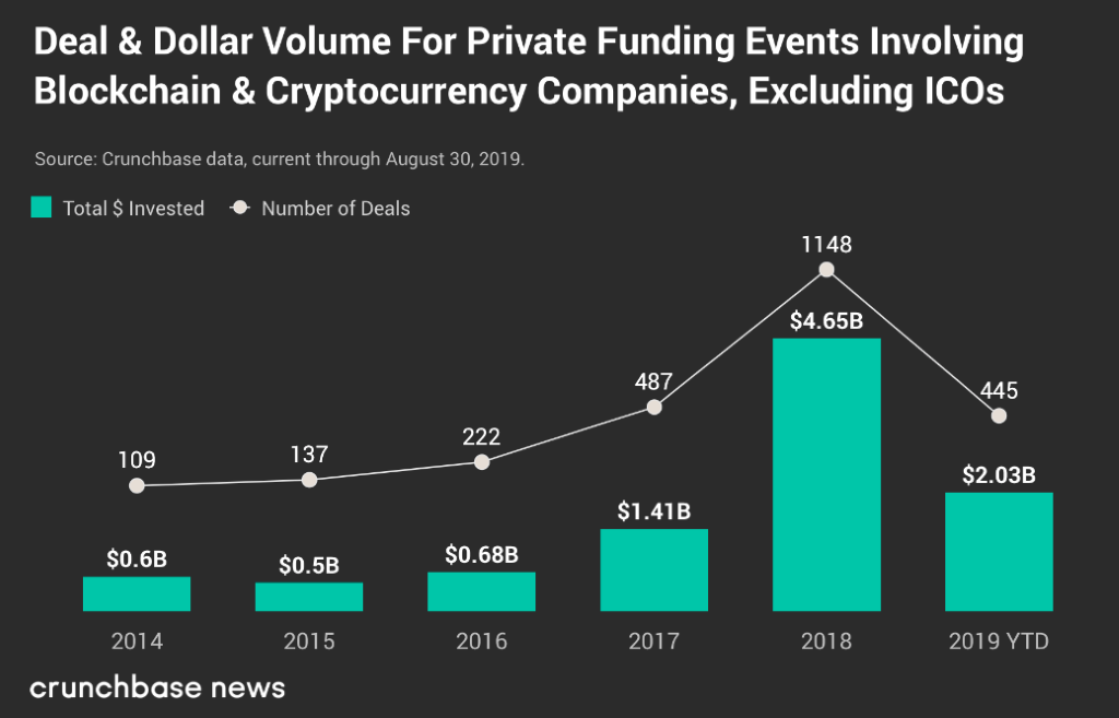 მიუხედავად იმისა, რომ 2019 წელი Bitcoin-ისა და ბლოკჩეინ-ინდუსტრიისთვის იოლი არ იყო, ინვესტორები რწმენას ინარჩუნებენ ამ სფეროს მიმართ, რასაც რიცხობრივი მაჩვენებლებიც ადასტურებს: მიმდინარე წელს ინვესტიციების საერთო მოცულობამ 2 მლრდ აშშ ოლარზე მეტი შეადგინა.