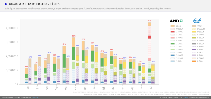 George Posted September 11, 2019 Posted September 11, 2019 AMD Q2 2019 CPU Market Share: The Calm Before the 7nm Storm https://www.tomshardware.com/news/amd-desktop-pc-mobile-server-overall-market-share,40141.html ველოდებით Q3 მაჩვენებლებს რომელიც ჯერ არ დადებულა, მაგრამ არაოფიციალური ჩარტი არის უკვე პასსმარკზე: https://www.cpubenchmark.net/market_share.html 68%-32% გახდა ბაზრის წილი, მანდ ყველა უნიტები არაა ნაანგარიშები ოღონდ, ოფიციალური უფრო ტოჩნი იქნება როცა დაიდება განახლებული ვერსია, მანდ კორპორაციული და გოსექტორის პასტავკებიც არის დათვლილი, ანუ ყველაფერი მსოფლიო მაშტაბით, მაგ პასმარკის ჩარტში მარტო დადებული ბენჩმარკების მიხედვითაა დათვლილი, ბენჩმარკები კი ყველა გაყიდულ პროცესორზე არ ჩატარებულა, ამიტომ ტოჩნი არაა, იგივე ვარიანტია რაც სტიმზე, მაგრამ მანდ მაინც სტიმის უზერებზე მიდის საუბარი ვინც სისტემას თამაშებისთვისაც იყენებს და გეიმინგში ვის რა პროცესორი აქვს ამ ეტაპზე მაგასაც გვიჩვენებს + იმასაც კარგათ აჩვენებს რომ კაზუალური გეიმერების რაოდენობა ბევრათ უფრო მეტია ვიდრე თანამედროვე იგრების, მაგიტომაა დღემდე 53% 4 ბირთვიანი პროცესორების დომინაცია + ფინანსები რა თქმა უნდა, ყველას არ შეუძლია მაინც თანამედროვე 1500$+ სისტემების დათრევა, პასმარკის ჩარტი გვიჩვენებს რომ დაჟე 2006 წელს ამდ არ ყოფილა წინ ინტელზე, ყველაზე დიდი ატრივი ინტელს კი 2016 წელს ქონდა მიღწეული, მაგრამ რეალური ეგეთივე სტატისტიკა 6-8% უფრო მაღალია ინტელის სასარგებლოთ, მაგრამ q3 მაჩვენებლები ჯერ არ დადებულა, 20% უნდა გაცდენოდენ წესით თუ მობილური პროცესორების გაყიდვების რაოდენობა ინტელზე ამდ დესკტოპ პროცესორების რაოდენობის დონის მაინც არ ყოფილა მაგ პერიოდში, სერვერულ სეგმენტში მაინც საკმაოთ მცირე რაოდენობის პროცესორები იყიდება წლის მანძილზე მობილურ და დესკტოპ მეისნტრიმ სეგმენტებთან განსხვავებით, არც ექსტრიმალური ძვირიანი პროცესორები იყიდება დიდი რაოდენობით არა სერვერული სეგმენტის რომლებსაც უფრო რენდერისთვის და სერიოზული გრაფიკული სამუშაოებისთვის იყენებენ