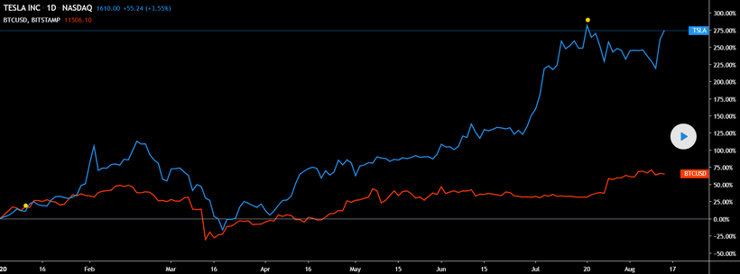 Magdalena Posted August 19, 2020 Posted August 19, 2020 Bitcoin-მა პოპულარობით გაუსწრო აშშ-ის წამყვან კომპანიებს და მხოლოდ Tesla-ს ჩამორჩება. ამას მოწმობს ფინანსური ანალიტიკური პორტალის, TradingView-ს მონაცემები. Tesla-ს კოტირებები გახდა ყველაზე ხშირად განხილვადი ივლისში 31 შტატში. Bitcoin-ი ყველაზე მეტად პოპულარული აღმოჩნდა კალიფორნიაში, ვაშინგტონსა და ორეგონში. განხილვების კუთხით მესამე ადგილი დაიკავა Boeing-ის აქციებმა. წლის დასაწყისიდან მოყოლებული, Tesla-ს აქციების ფასი 283%-ზე მეტით გაიზარდა იმ დროს, როდესაც Bitcoin-ის ფასმა მოიმატა 60 %-ით. წყარო: TradingView Apple, რომლის კოტირებები წლის დასაწყისიდან მოყოლებული გაიზარდა 53%-ით, ვერ გახდა ლიდერი ვერც ერთ შტატში. TradingView-ში აღნიშნავენ, რომ ტრეიდერებისა და ინვესტორების ინტერესი კომპანიის მიმართ მეტად დაბალია. Bitcoin-ის, როგორც ტრადიციული ფინანსური ინსტრუმენტის ალტერნატივის როლს, ბევრი ექსპერტი აღნიშნავს. ვენჩურული კომპანია Social Capital-ის დამფუძნებელმა BTC-ს უწოდა მსოფლიო ეკონომიკის ვარდნისგან დაზღვევა, Nasdaq-ზე კოტირებადმა კომპანია MicroStrategy-მ 250 მლნ აშშ დოლარი შეიტანა Bitcoin-ში. https://bit.ly/3g3OTRD Quote
