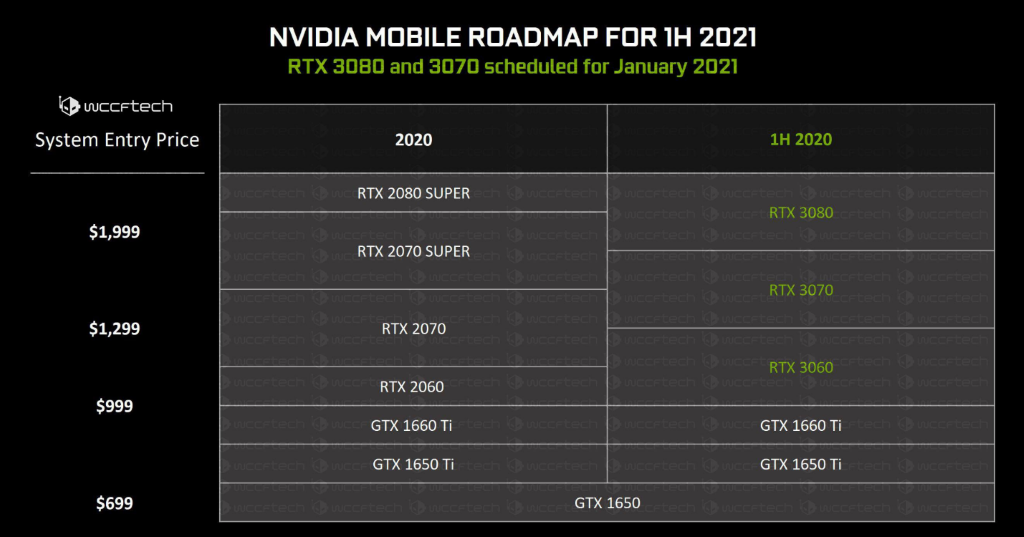 Magdalena Posted November 27, 2020 Posted November 27, 2020 ინტერნეტში გამოჩნდა სლაიდები კომპანია NVIDIA-ს მიერ ლეპტოპებისთვის რეკომენდებული პროგრამული უზრუნველყოფის მახასიათებლებით. სლაიდების თანახმად, მომდევნო თაობის ლეპტოპები ხელმისაწვდომი უნდა იყოს როგორც მაღალი წარმადობის AMD Ryzen 5000H პროცესორებით, ისე NVIDIA GeForce RTX 3000 გრაფიკული დაფებით. მობილური AMD Ryzen 4000H პროცესორების ამჟამინდელი თაობა შემოიფარგლება PCIe 3.0 x8-ით, რის გამოც რომ ახალ ლეპტოპებში ყველაზე ძლიერი გრაფიკული დაფა იყო RTX 2060. ეს ყველაფერი მალე შეიცვლება, რადგანაც ახალი ინფორმაციის თანახმად NVIDIA RTX 3070 და RTX 3080 დაფები წარმოდგენილი იქნება მომდევნო თაობის Ryzen 7 პროცესორებთან ერთად. AMD Cezanne (Ryzen 5000H) ლეპტოპები უკვე შესულია გრძელვადიან გეგმაში GeForce RTX 3070 და RTX 3080 ვიდეო დაფებთან. სლაიდის თანახმად, კომპანია მზადაა მხარი დაუჭიროს AMD Ryzen 5000-ის ბაზაზე მოქმედ სისტემებს. ამგვარი რამ დიდ ზეწოლას მოახდენს Intel-ზე, რომელიც მრავალი წლის მანძილზე დომინირებდა ლეპტოპების ბაზარზე. რეკომენდებული კონფიგურაციის თანახმად, RTX 3060 გრაფიკა შემოთავაზებული იქნება 999 აშშ დოლარიდან ზემოთ ფასის მქონე ლეპტოპებში. RTX 3070 ვარიანტი ხელმისაწვდომი იქნება 1299 აშშ დოლარის ზემოთ ფასიან ლეპტოპებში. უმაღლესი დონის RTX 3080 დაფები კი წარმოდგენილი იქნება ლეპტოპებში, რომელთა ფასი იქნება არანაკლებ 1999 აშშ დოლარი. NVIDIA-ს სამივე ვიდეო დაფა უკვე აღწერილია პორტალ Notebookcheck-ის მიერ. RTX 3080-ს ექნება გრაფიკული პროცესორი GA104-775, RTX 3070-ს - GA104-770, RTX 3060-ს კი - GA104-610. მეხსიერების კონფიგურაცია ჯერ კიდევ დაუზუსტებელია, თუმცა ვარიანტის შესაბამისად ამ დაფებს ვიხილავთ 8 და 16 გბ GDDR6 მეხსიერებით. ისევე როგორც ადრე, წარმოდგენილი იქნება ვიდეო დაფების ორი ვარიანტი: Max-P ან Max-Q. NVIDIA-ს, AMD-სა და Intel-ს ჯერ ოფიციალურად არ დაუდასტურებიათ როდის უნდა გამოვიდეს მომდევნო თაობის მობილური კომპიუტერები. ცნობილია ის, რომ ანონსები მოსალოდნელია გამოფენა CES 2021-ზე, რომელიც ვირტუალურ ფორმატში ჩატარდება. https://bit.ly/2V1vkBy Quote
