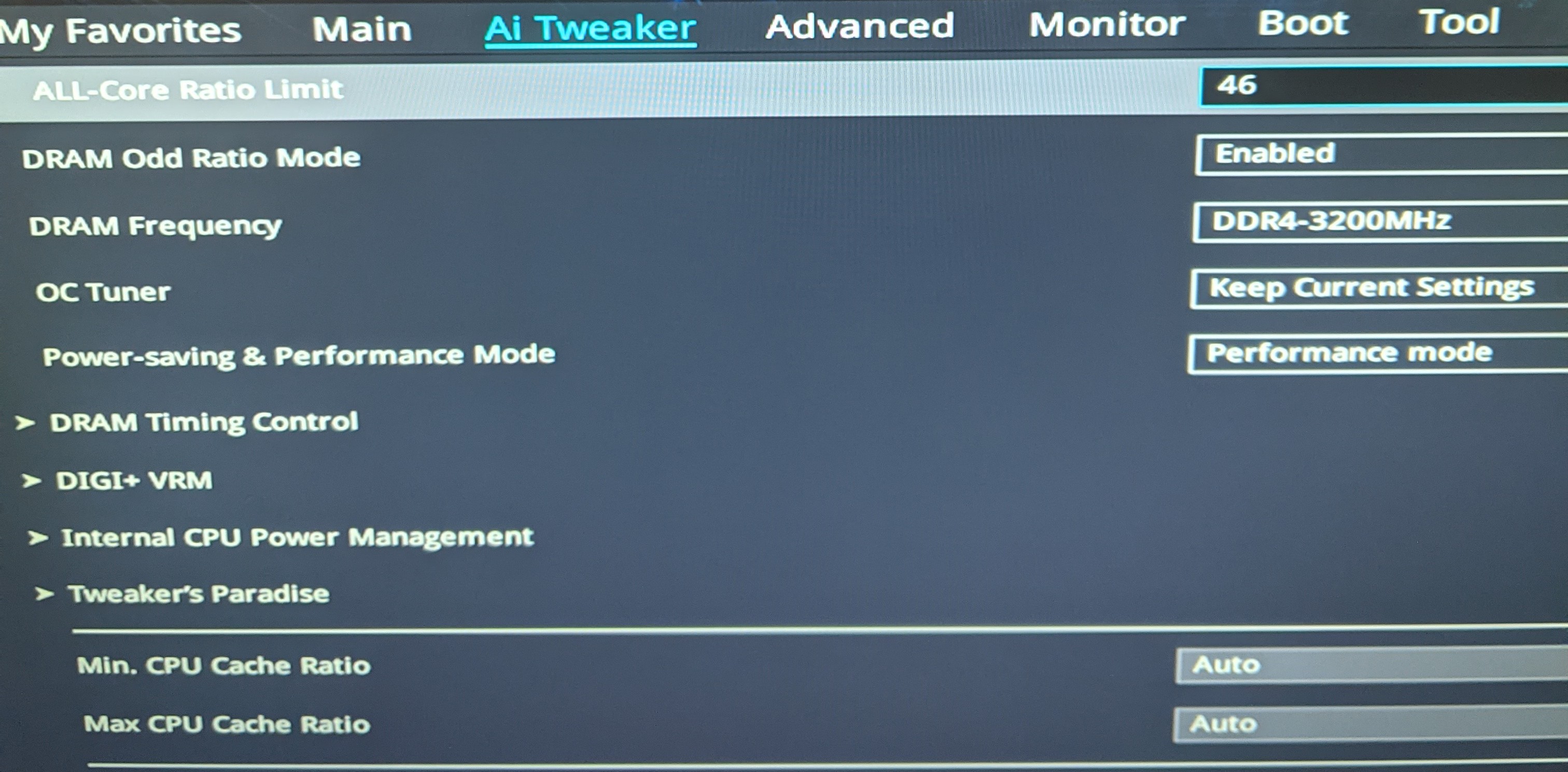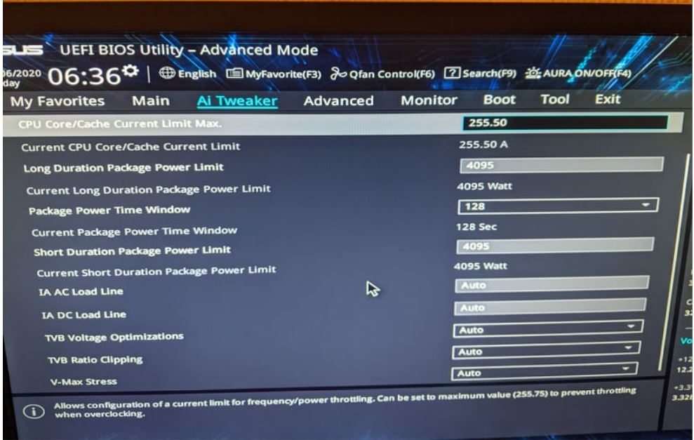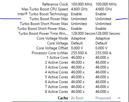 მიშკა Posted December 6, 2020 Author Posted December 6, 2020 ესეც გავატარე. 5 minutes ago, Gogla1990 said: გაუზარდე ცოტა TDP, თუ არ გამოსწორდა ვოლტიც მიაყოლე 105 ვატი არანაირად არ ეყოფა 4.6-ზე მაგ პროცესორს ნორმალურად სამუშაოდ 1,2 მაქ გოგლა. TDP რა არის? power limit მოხსნილია საერთოდ ახლა ამ ბოლო ინტელის ტესტზე აღარ უქნია. ანუ ცოტაა 1,2? თუ ამაზე მეუბნები, ეგ საერთოდ მოხსნილია. გუშინ ვიჩალიჩე ეგენი ბიოსიდან.