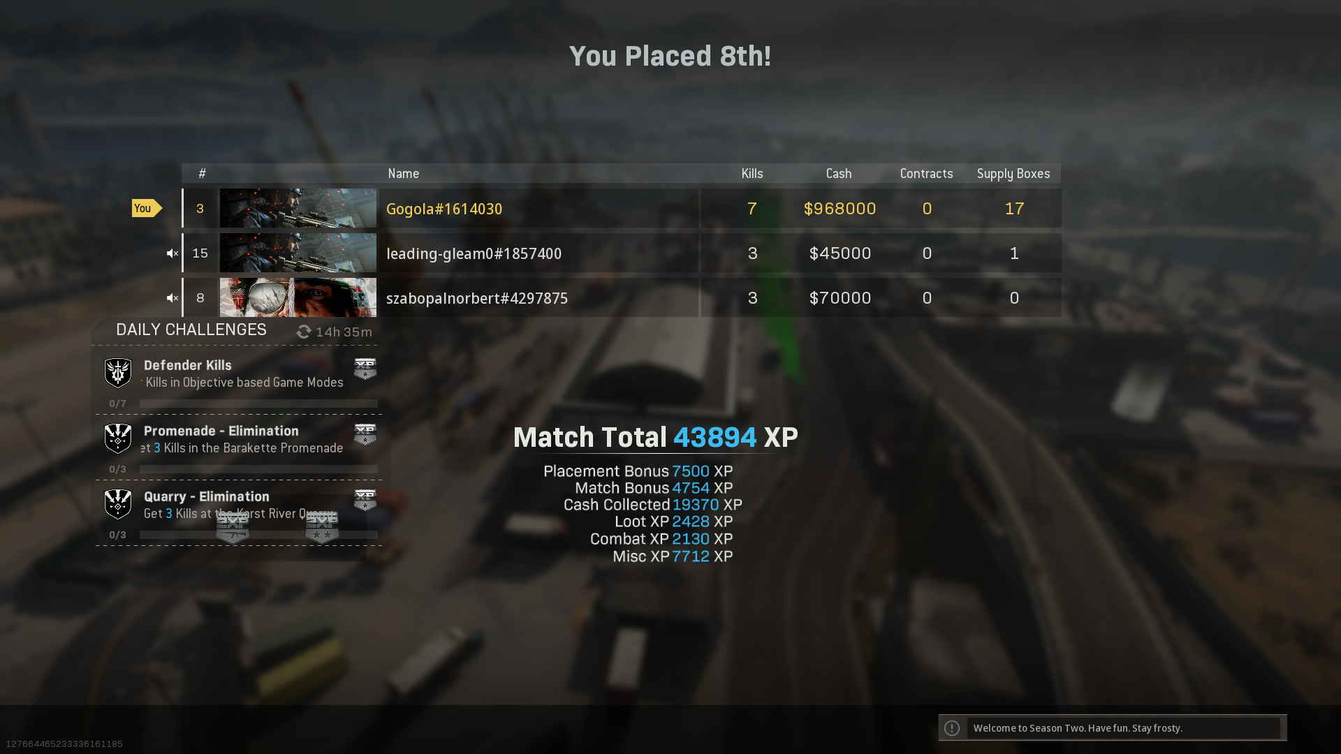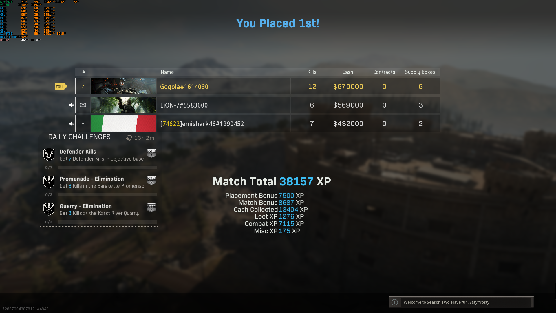 GIVI-1990 Posted March 6, 2021 Author Posted March 6, 2021 ესეც დღევანდელი შედეგი მ4-ით , 10 კაცი გავაფესტაკე , ერთი პირდაპირ მანქანაში ჰეადშოტით მოვხსენი ოღონდ ეგ უკვე სნაიპერით დღეს მაგარ მუღამზე ვიყავი რა, აი კარგი დასვენებული რო ვარ კარგათ ვთამაშობ , სამუშაოდან დაღლილი რო ვარ ვერ ვარ ხოლმე ხოდზე , ეხლა ერთი სული მაქ 60-იან მჭიდს როდის გავხსნი 1 Quote
