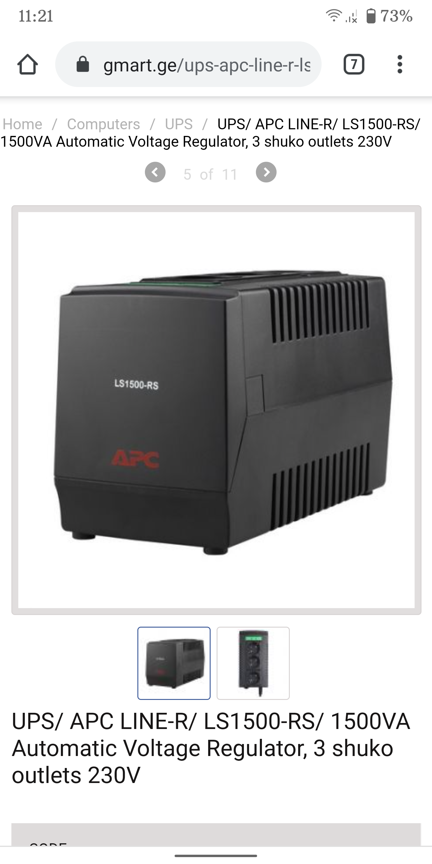 მიშკა Posted December 14, 2020 Author Posted December 14, 2020 1 minute ago, nseries430 said: https://www.apc.com/shop/am/en/products/APC-Line-R-1500VA-Automatic-Voltage-Regulator-3-Schuko-Outlets-230V/P-LS1500-RS 750 ვატია უწერია ეგ 1500 ვოლტ-ამპერია მაგ საიტზე წერია. თავიანთზე არ ეწერა და მაგიტო ვიკითხე. იტოგში რაღაც სირი მაღაზიაა ეტყობა