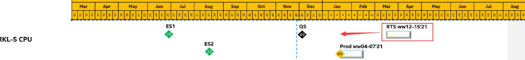 ასევე, აღსანიშნავია RTS ან Ready To Ship-ით მონიშნულ თარიღებ, რომლებიც ექცევა მომდევნო წლის 22 მარტი - 18 აპრილის პერიოდში. ამასთან, გრაფაში მოცემული წითელი ისარი შეიძლება მიუთითებდეს Intel-ის სურვილზე, რაც შეიძლება ადრე დაიწყოს პროდუქციის მიწოდება. ავად @OneRaichu თებერვალში პროგნოზირებს გაყიდვების დაწყებას.