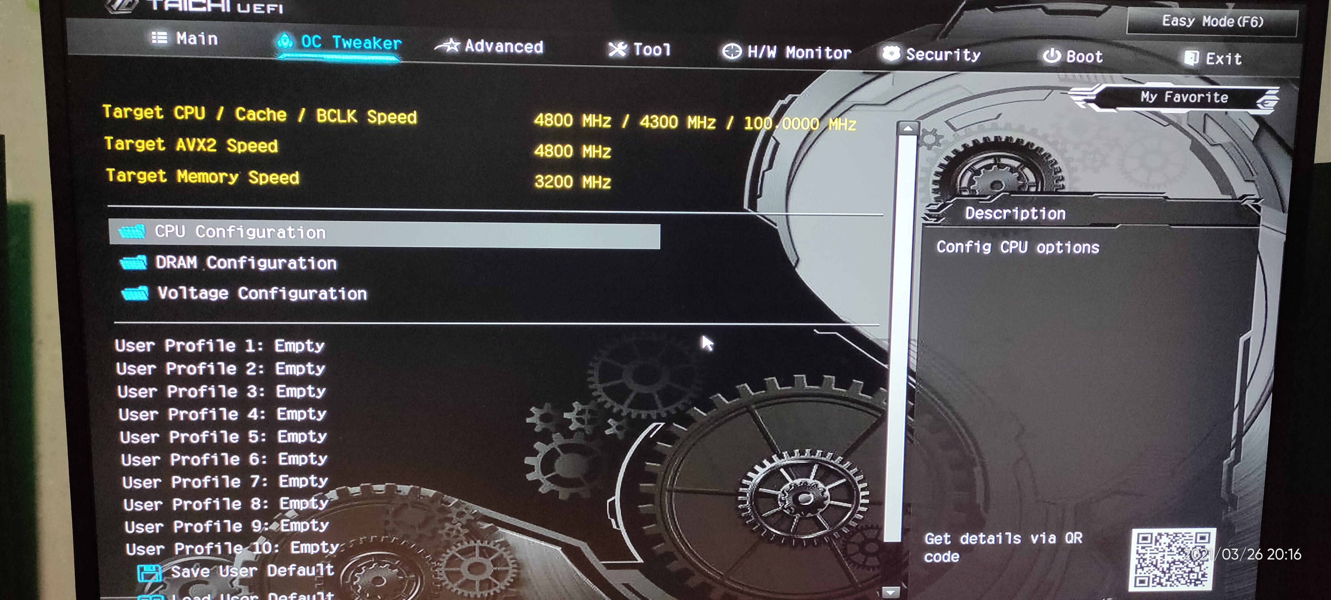 G1ORG1 Posted March 26, 2021 Author Posted March 26, 2021 cpu oc სეთინგები ვაბშე არაა დდდ ვოლტაჟი ეხლა ესე დავაყენე. აი აქ სად როგორ რანაირად უნდა მივარაზგონო ხზ Quote