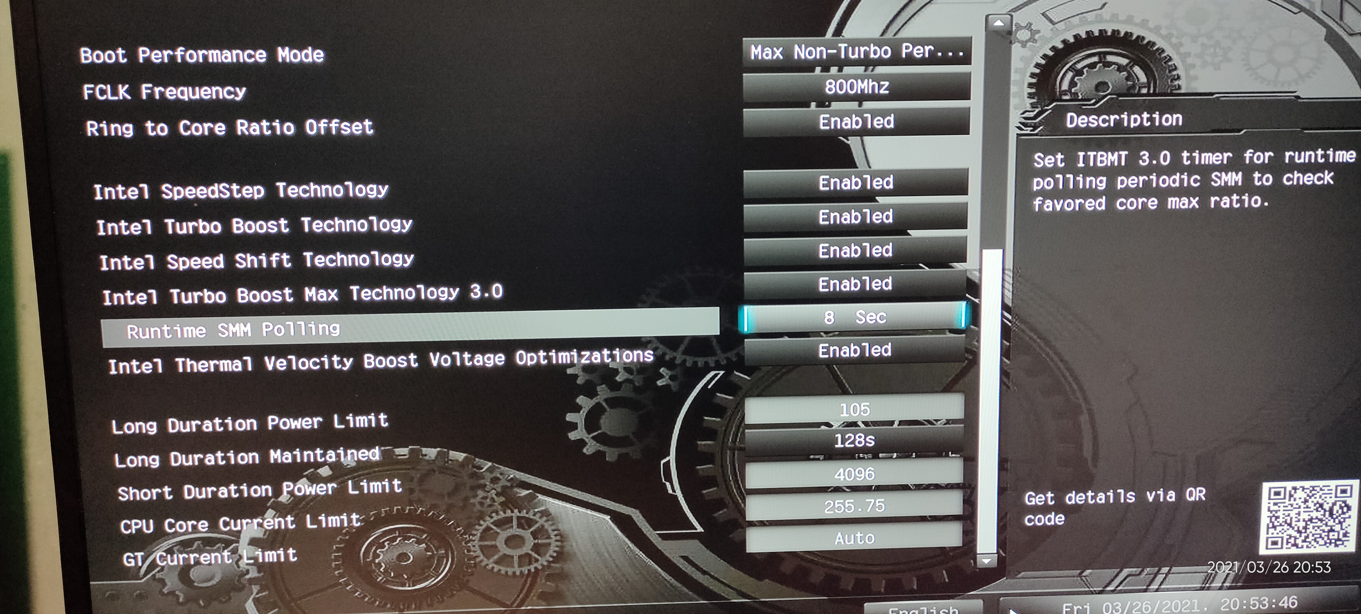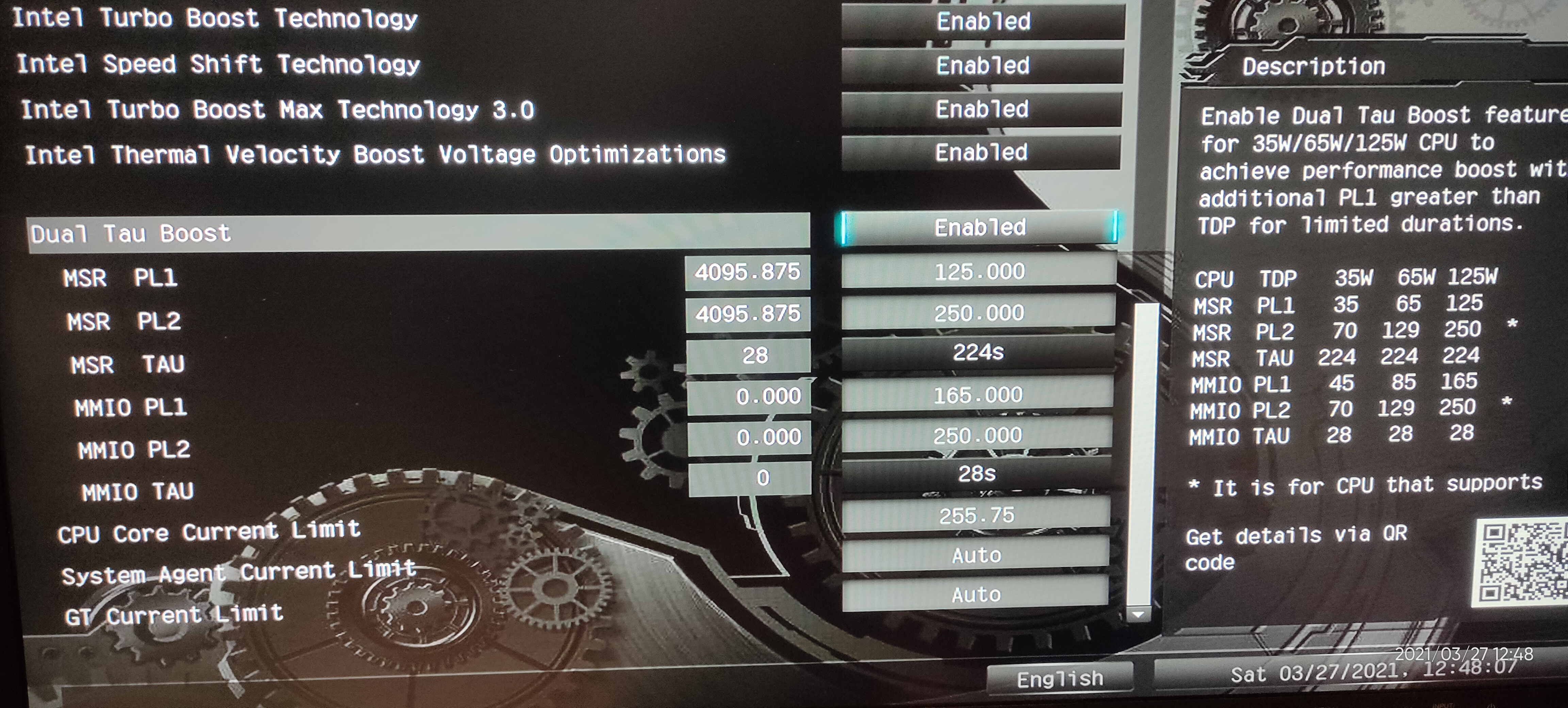 G1ORG1 Posted March 26, 2021 Author Posted March 26, 2021 გავბენჩე, ეს ვოლტი ყოფნის, მაგრამ 4600ზე ზემოტ არ ადის, დაუტვირთავზე კიდე არ ჩამოდის, თითქმის სულ 4600ზე დგას, ვოლტიც 1.18ზეა სულ. $#^#(|ი ამ ახალ სოკეტს, ვერ ვიყავი მშვიდად z97ზე? :დ ლონგ დურეიშენ ფაუარ ლიმიტი 105 ნორმალურია? ტურბო 3.0 ხომ მაქვს ჩართული და მანდ წამებია კიდე, 8sec რომ წერია, ეგ რისია, ან 3.0 რას მიკეთებს, 4800ზე არ ადის მაინც პროცესორი. ფუი ბლიად 3770ს ქონდა 41მდე გახსნილი მამრავლი და აქ არც ჩანს. გიგაბაიტის ბიოსში კი ჩანდა მაგრამ ტყუილად იყო, ვერ დავაყენე 8ვე ბირთვი 48 მამრავლზე. Quote