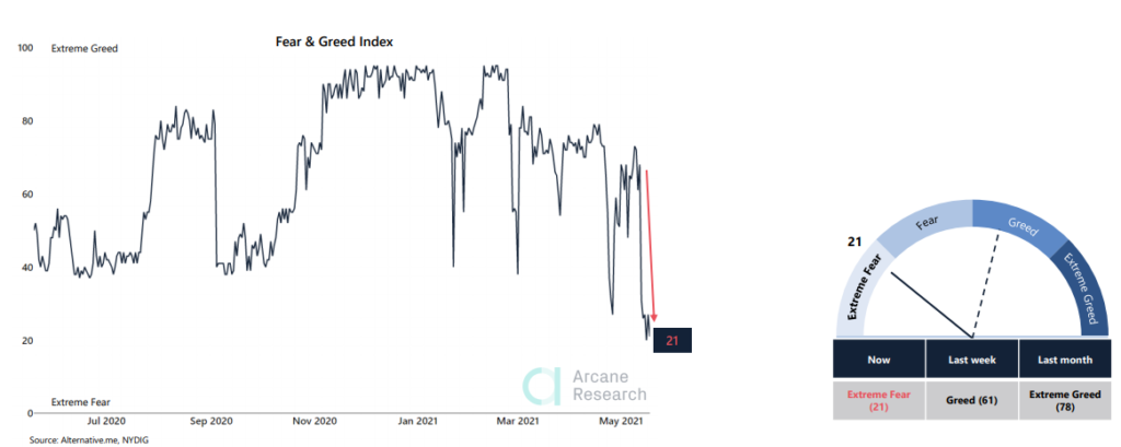 Magdalena Posted May 20, 2021 Posted May 20, 2021 მიმდინარე კორექტირების გაღრმავების წინ შიშის და სიხარბის კრიპტოსავალუტო ინდექსი დაეცა ყველაზე დაბალ მაჩვენებლებამდე 2020 წლის აპრილის შემდეგ. Arcane Research-ის ანალიტიკოსებმა წარმოადგინეს ინდექსის შესუსტების რამდენიმე ფაქტორი. წყარო: Arcane Research. ჩიკაგოს სავაჭრო ბირჟაზე (CME) Bitcoin-ფიუჩერსებით ვაჭრობაზე კონტანგო პრაქტიკულად გაქრა, თუმცა ჯერ კიდევ თებერვლის დასაწყისში ეს მაჩვენებელი 20%-ს აღემატებოდა. ანალიტიკოსებმა ყურადღება გაამახვილეს იმაზე, რომ ინდიკატორის ამჟამინდელი მაჩვენებელი აღმოჩნდა უფრო დაბალი, ვიდრე იყო 2020 წლის 12-13 მარტის გაყიდვების პერიოდში. იმ დროს პრემია CME-ზე იყო უფრო მაღალი არარეგულირებად პლატფორმებთან შედარებით. ამჟამად საპირისპირო ვითარება შეინიშნება. „ფიუჩერსების ბაზარზე აისახა ინსტიტუციონალური ინვესტორების „დათვური“ განწყობა - განმარტავენ ანალიტიკოსები. წყარო: Arcane Research. Grayscale Investments-ის Bitcoin-ტრასტის ფასიანი ქაღალდების აქტიურმა გაყიდვებმა გადააჭარბა მათ დისკონტს აქტივების წმინდა ღირებულების (NAV) მხრივ ახალი, ანტირეკორდული 25%-ით. ანალიტიკოსებმა ხაზგასმით აღნიშნეს, რომ ასეთი სიტუაცია ემუქრება ინსტრუმენტის იმ მფლობელებს, რომლებმაც არ დაცვეს რისკ-მენეჯმენტის წესები ვაჭრობისას. მათი პოზიციების იძულებითმა ლიკვიდაციამ შესაძლოა საფრთხე შეუქმნას პირველ კრიპტოვალუტას - განაცხადეს მათ. წყარო: Arcane Research. Glassnode-ის ანალიტიკოსებმა მიმდინარე კორექცია ახსნეს მოკლევადიანი ინვესტორების მიერ წამოწყებული პანიკური გაყიდვებით. https://bit.ly/3fxy6bt Quote