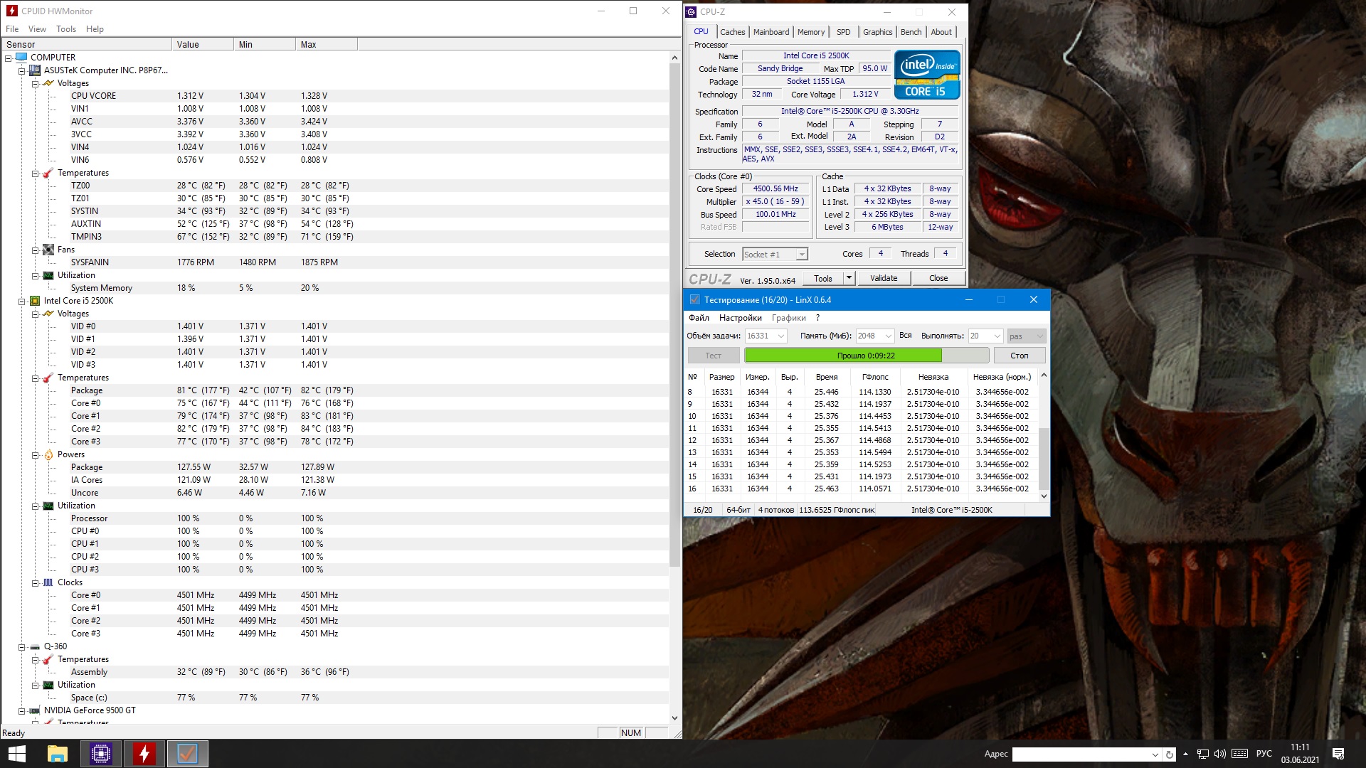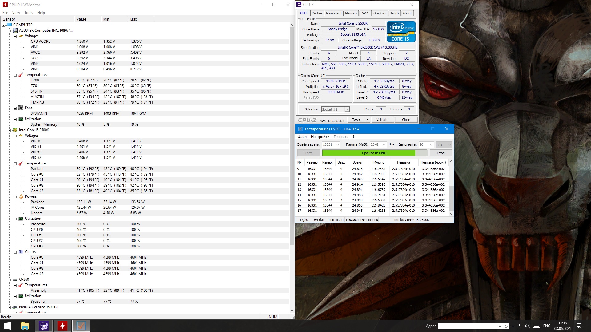 Dryadalis Posted June 5, 2021 Posted June 5, 2021 გამარჯობათ მეგობრებო, მოკლედ არ მინდოდა გაყიდვა, მაგრამ მიწევს, ორი პლატა მაქვს ერთი 1366 სოკეტზე, მეორე 1155. განვიხილოთ ბოლო: P8P67 DELUXE, ამ ჩიპსეტზე(P67) ტოპ პლატა, და ასევე პროცესსორი i5 2500k Sandy Bridge(ივი ბრიდჯიდან დაწყებული კრიშკის ქვეშ ჟღვინტები(გამარჯობა სკალპირება) აქვს ინტელს, რაც ოვერკლოკინგს უშლის), მოკლედ პლატას აქვს ბლუთუზი, პოსტ კოდების გამოსაყვანი ეკრანი, ასევე sata3 (6gb) და usb 3.0. Cmos რესეტის ღილაკი. 16 კვების ფაზა, აქედან 14 ემსახურება პროცესორს, 2 მეხსირების კონტროლერს კონკრეტულად შეგიძლიათ დაგუგლოთ ან წაიკითხოთ https://ru.gecid.com/mboard/asus_p8p67_deluxe/ კარგი ქულერის მეშვეობით, მაგალითად გამაქსით აიღებთ 4.5 გგცს, თუ კორპუსში ჰაერის ცირკულაცია კარგი გაქვთ ან წყალის გაგრილება გაქვთ, მეთსაც აიღებთ, წყალზე 5 გგც. მე გავტესტე ორ სიხშირეზე, 4.5(1.325ვ) და 4.6(1.375ვ) გგცზე, ტერმოპასტა HY810 გამოვიყენე(ცუდია), ქულერი Scythe'სგან, 120მმ ვენტილატორი, დახურულ კორპუსში, ტესტირება ხდებოდა LinX მეშვეობით(10 წუთი), კომპიუტერთან ახლოს ვინცა, კი იცის ვერცერთი თამაში ახლოსაც ვერ მივა, ლინქსთან(დატვირთვის მხრივ). ტროტლინგი აღინიშნება 95° ასვლის დროს, ანუ 4.8 ვეღარ ავიღე. ბანძი ქულერი 4გგც აიღებს(ვოლტაჟის შეცვლა არ დაჩირდრბა). მოკლედ ნახეთ სურათები-სკრინები, ფასი 400 ლარი(პლატა + პროცესორი). შეკითხვები თუ გაქვთ, ველქომ.