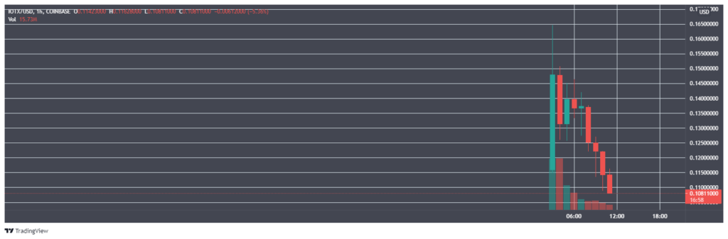 Coinbase-ზე ვაჭრობის დაწყების შემდეგ პლატფორმა IoTeX-ის ტოკენის კოტირებები (ტოკენები განკუთვნილია IoT მოწყობილობებისა და დეცენტრალიზებული პროგრამების დასაკავშირებლად) 42%-ით გაიზარდა. IOTX-ის კურსმა გახსნის მომენტიდან 0.116 აშშ დოლარიდან 0.165 აშშ დოლარს მიაღწია, თუმცა მომდევნო ვარდნის პირობებში 0.108-მდე შემცირდა.