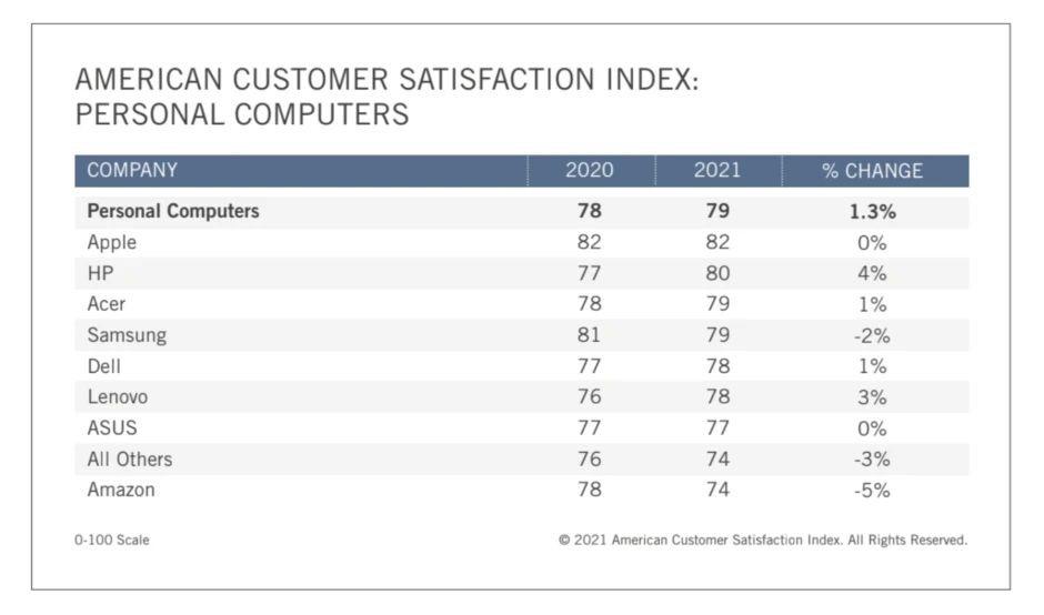 Magdalena Posted September 23, 2021 Posted September 23, 2021 iPhone-ები, როგორც წესი, მომხმარებლების კმაყოფილების რეიტინგში მაღალ პოზიციაზე იმყოფება. iPad-ისა და MacBook-ის ბოლო წარმატებების წყალობით კომპანია Apple სათავეში ჩაუდგა American Customer Satisfaction-ის (ACSI) მორიგ ანგარიშს. ამჯერად გამოკითხულ იქნა 7960 მომხმარებელი აშშ-დან, რომლებიც შემთხვევითობის პრინციპით იყვნენ არჩეული. გამოკითხვა ჩატარდა 2020 წლის 7 ივლისიდან 2021 წლის 26 ივნისამდე პერიოდში. შეერთებულ შტატებში პერსონალური კომპიუტერის მფლობელებს შორის კმაყოფილების საერთო მაჩვენებელი 1%-ით, 79%-მდე გაიზარდა. Apple ლიდერობს 82%-ით, ისევე როგორც ერთი წლის წინ. HP მეორე ადგილზეა 80%-იანი რეიტინგით, გასულ წელს მისი რეიტინგი 77% იყო. Acer მესამე ადგილზეა 79%-იანი რეიტინგით, ისევე როგორც Samsung. ერთი წლის წინ კომპანია Samsung მეორე ადგილზე იმყოფებოდა 81%-იანი მაჩვენებლით. სამწუხაროდ, მიმდინარე წელს არ ხდება თითოეული ბრენდის დაყოფა კატეგორიების მიხედვით, ამიტომ შეუძლებელია იმის გაგება, თუ სად წარმოაჩენს თავს კარგად კონკრეტული კომპანია ან ჩამორჩება. რაც შეეხება პლანშეტებს, მომხმარებელთა კმაყოფილების რეიტინგი წლის განმავლობაში 78%-დან 76%-მდე შემცირდა. სხვადასხვა ასპექტს შორის მომხმარებლები კმაყოფილნი არიან დიზაინით, გამოყენების სიმარტივით და წინა თაობის პლანშეტების გრაფიკული წარმადობით. რჩება ფუნქციონალურობისა და პროცესორების სიჩქარის გაუმჯობესება, აგრეთვე აქსესუარების ხელმისაწვდომობა. მათ მოეკუთვნება ქეისები, დამტენი მოწყობილობები და გადამყვანები. https://bit.ly/3u0yZAb Quote