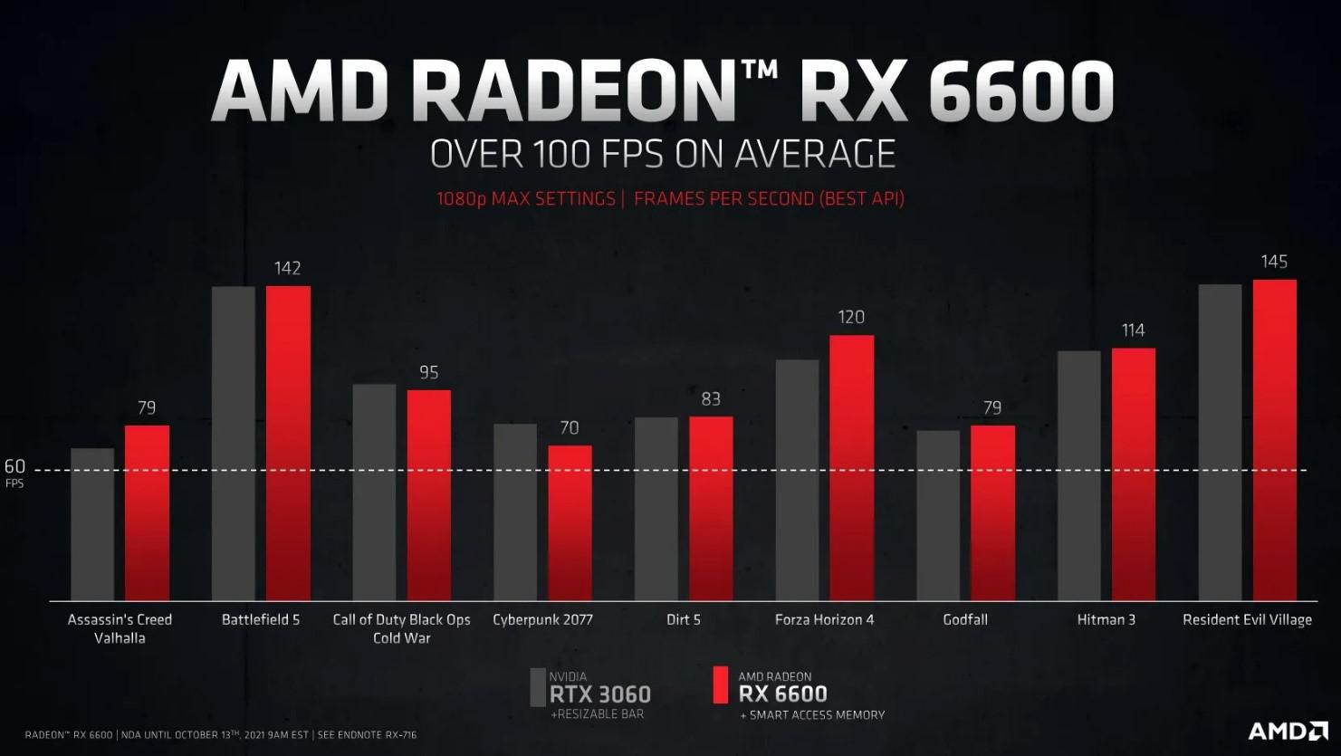 Magdalena Posted October 15, 2021 Posted October 15, 2021 კომპანია AMD-მ წარადგინა RDNA 2 არქიტექტურაზე დამყარებული დესკტოპ სერიის ვიდეო დაფების უმცროსი წარმომადგენელი Radeon RX 6600. როგორც მოსალოდნელი იყო, კომპანია ახალ ვიდეო დაფას Nvidia GeForce RTX 3060 მოდელს უპირისპირებს, რომელიც ასევე ყველაზე დაბალბიუჯეტური დაფაა ამ დროისთვის NVIDIA-ს დესკტოპ სეგმენტში. AMD-ის ახალი ვიდეო დაფა გვევლინება, როგორც გეიმინგისთვის განკუთვნილი მოდელი 1080p გაფართოების პირობებში. ქვემოთ მოცემულია Radeon RX 6600-ის ტესტირების შედეგები რამდენიმე თამაშში, რაც AMD-მ აჩვენა ახალი ვიდეო დაფის პრეზენტაციის დროს. სატესტო სისტემა მოიცავდა დედა დაფა Gigabyte X570 Aorus Master-ს, AMD Ryzen 5 5600X პროცესორს, 16 გბ DDR4-3600 ოპერატიულ მეხსიერებას და ოპერაციულ სისტემა Win10 Pro x64 19041.508-ს. თავად ვიდეო დაფას რას შეეხება, მას აქვს 8 გბ GDDR6 ვიდეომეხსიერება 128-ბიტიანი ინტერფეისით, 28 გამომთვლელი ბლოკი (CU) და 32 მბ Infinity Cache. გრაფიკული პროცესორის გეიმინგ სიხშირე შეადგენს 2044 მჰც-ს, სიხშირე აჩქარებისას კი - 2491 მჰც-ს. Radeon RX 6600 დაფის ჯამური სიმძლავრეა 132 ვატი და უზრუნველყოფს 8.93 TFLOPs (FP32) წარმადობას. AMD-ის მთავარმა პარტნიორებმა, როგორებიცაა ASRock, ASUS, Gigabyte, MSI, PowerColor, SAPPHIRE, XFX, უკვე წარადგინეს ვიდეო დაფის საკუთარი ვერსიები. ვიდეო დაფის ოფიციალური სარეკომენდაციო ფასი 329 აშშ დოლარს შეადგენს, რეალურად კი მითითებულ ფასად მისი შეძენა უბრალოდ შეუძლებელია, თუ გავითვალისწინებთ მიკროჩიპების ბაზარზე შექმნილ სიტუაციას, მაინინგის მორიგ ბუმს და რითეილერების მადას. https://overclockers.ru/blog/goldas/show/57545/predstavlena-videokarta-amd-radeon-rx-6600-po-rekomendovannoj-roznichnoj-cene-329-dollarov Quote