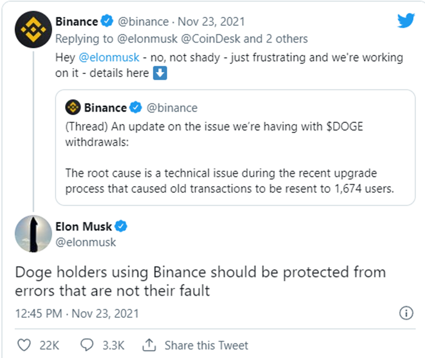 Magdalena Posted November 26, 2021 Posted November 26, 2021 როდესაც სამთავრობო მარეგულირებლები იკვლევენ კრიპტოვალუტების მიმართ შეზღუდვების დაწესების შესაძლებლობას, ერთ-ერთი ყველაზე ხშირად განხილული საკითხი ბირჟების კონტროლია. დღეს ასეთ სტრუქტურებს შეუზღუდავი ძალაუფლება გააჩნიათ მომხმარებელთა ფინანსებზე და ავლენენ პირამიდის ყველა ნიშანს. ბევრი ბირჟა აიძულებს მომხმარებლებს ხელი მოაწერონ არამეგობრულ ხელშეკრულებებს, რომლის მიხედვითაც ციფრულ საფულეში ფული შეიძლება ცალმხრივად დაიბლოკოს. ვინაიდან Binance ითვლება უდიდეს ბირჟად, გასაკვირი არ არის, რომ ის უფრო ხშირად ეხვევა სკანდალებში, ვიდრე სხვები. 10 ნოემბერს ცნობილი გახდა, რომ სისტემა შემთხვევით ახორციელებდა Dogecoin-ზე განმეორებით გადარიცხვებს რამდენიმე ასეული ადამიანის საფულეზე. მოგვიანებით გაირკვა, რომ ზოგიერთმა „იღბლიანმა“ 2019 წელს სხვა ადამიანების საფულეებში სხვადასხვა რაოდენობის Dogecoin გაგზავნა. იმ დროს შემოსავალი ასობით დოლარს აღწევდა, ხოლო 2021 წლის ნოემბრის დასაწყისში ეს მაჩვენებელი 100-ჯერ გაიზარდა. ბევრმა გაიტანა ფული გადამცვლელების მეშვეობით და მათ უბრალოდ არ იციან ვინ არიან იმ საფულეების მფლობელები, რომლებზეც Binance-მა განმეორებითი გადარიცხვები განახორციელა. სამწუხაროდ, ბირჟა უბრალოდ არ ზრუნავს თავისი მომხმარებლების პრობლემებზე, რადგან გადაწყვიტა ამ ადამიანების საფულეების დაბლოკვა მთელ ფულთან ერთად. დაზარალებულებმა მიმართეს პრესას, ექსპერტები კი ირწმუნებოდნენ, რომ სასამართლო პროცესიც კი ვერაფერს მოაგვარებდა. ჩანდა, რომ ვერაფერი მოგვარდებოდა, თუმცა ჰორიზონტზე ილონ მასკი გამოჩნდა. 23 ნოემბერს მან პირდაპირ მიმართა Binance-ის დამფუძნებელ Changpeng Zhao-ს და ჰკითხა, რა სამარცხვინო რამ ხდებოდა Dogecoin-ის მფლობელებთან მიმართებაში. ილონ მასკის აღშფოთების საპასუხოდ ბირჟამ დეტალები გააზიარა და აღნიშნა, რომ იცის თავისი მომხმარებლების პრობლემების შესახებ და შეეცდება რაც შეიძლება მალე მოაგვაროს ყველაფერი. სწორედ ამ მომენტში გახდა ცნობილი, რომ ბირჟას დაბლოკილი ჰქონდა 1674 საფულე. მასკმა განაცხადა, რომ Dogecoin-ის მფლობელები დაცული უნდა იყვნენ ასეთი ხარვეზებისგან, განსაკუთრებით თუ ეს მათი ბრალი არ არის. ამის შემდეგ Changpeng Zhao თავად ჩაერია საქმეში. მან განმარტა, რომ Binance-ს შეექმნა შეცდომა, რომელიც გამოწვეული იყო Dogecoin-ის საფულის უახლესი ვერსიით და გაიხსენა, რომ Tesla-ც განიცდიდა ხარვეზებს, რამაც შეშფოთება გამოიწვია ელექტრომობილების მფლობელებში. საკუთარი სიტყვების მხარდასაჭერად Zhao-მ გამოიყენა The Guardian-ის ვებსაიტზე გამოქვეყნებული პუბლიკაციის ბმუ